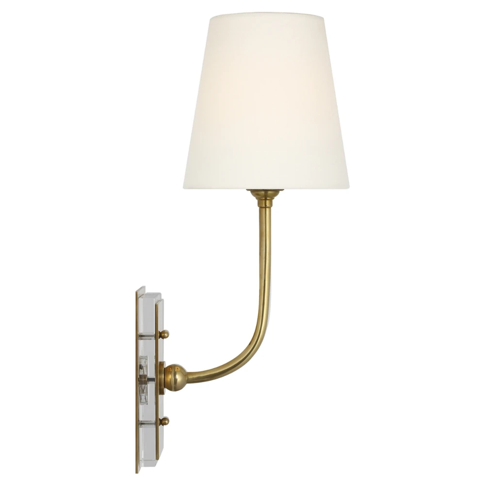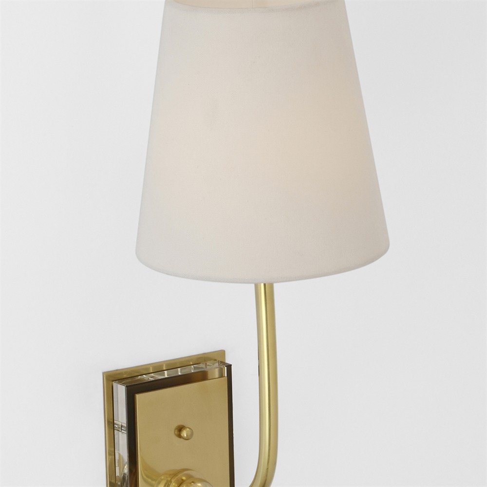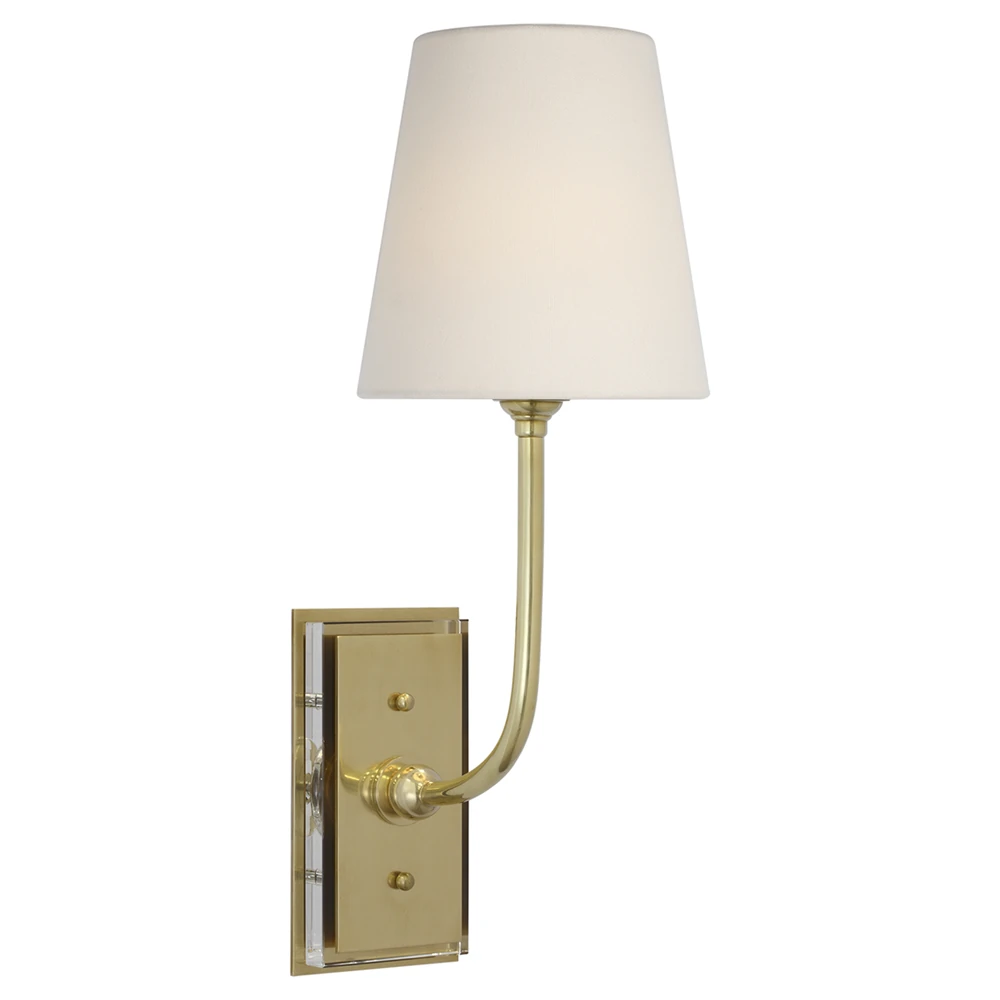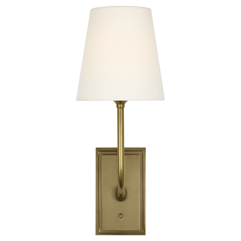 • Visual Comfort Lyndsie Traditional Linen Shade Antique Brass Armed Sconce|Kathy Kuo Home