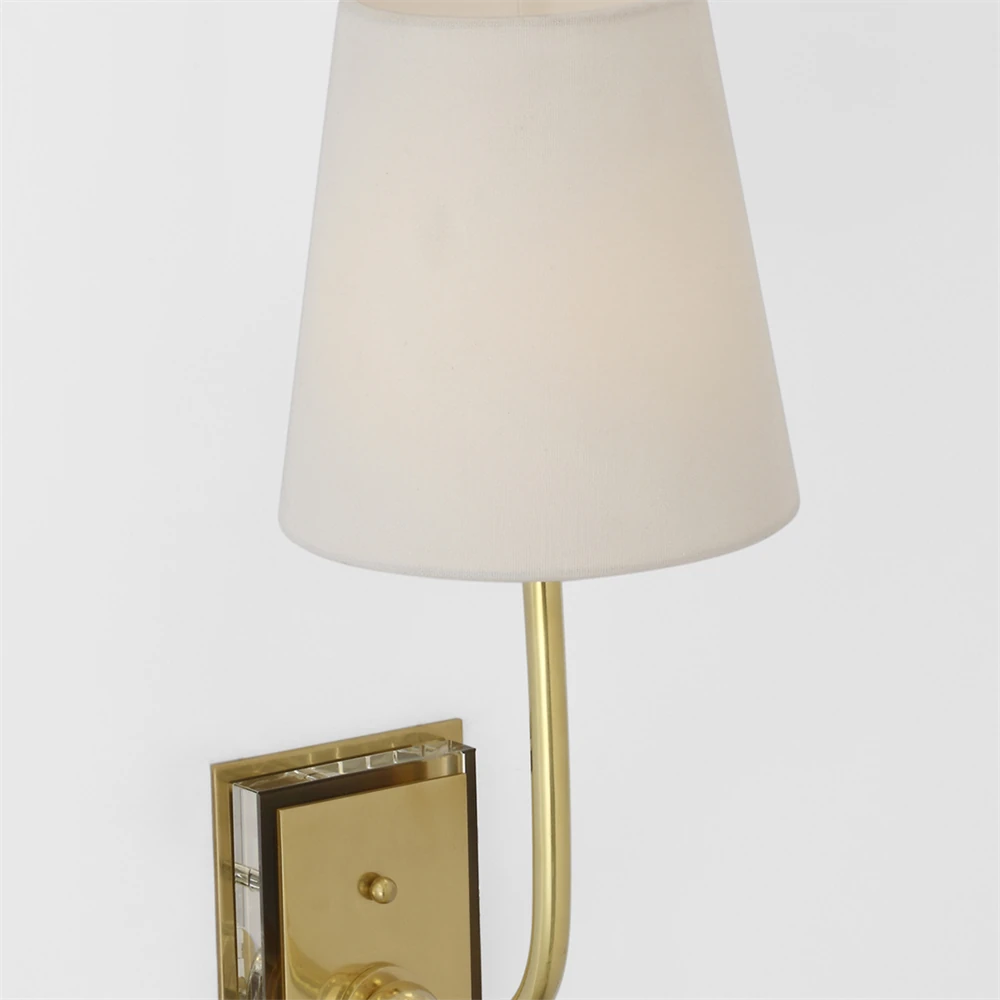 • Visual Comfort Primitive Modern Antique Brass Metal Linen Shade Wall Sconce|Kathy Kuo Home