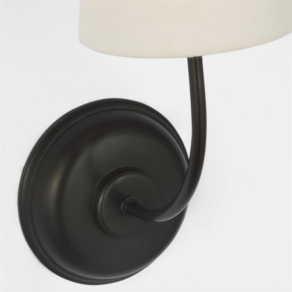 • Visual Comfort Lyndsie Traditional Linen Shade Antique Brass Armed Sconce|Kathy Kuo Home