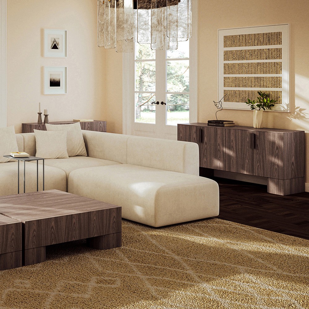 • Milan Modern Classic Brown Oak Travertine Sideboard|Kathy Kuo Home