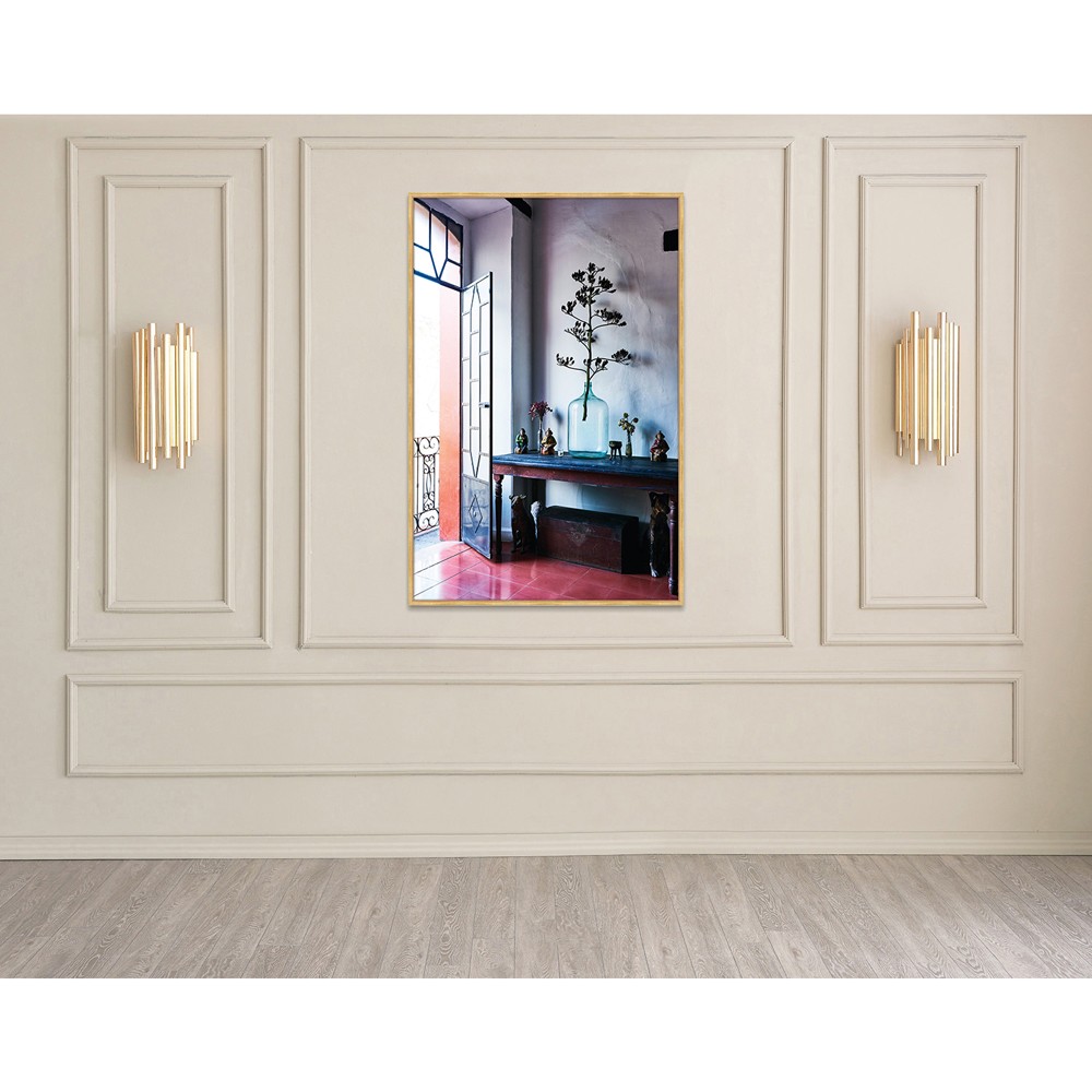 Solenne Updated Traditional Blue Bottle Gold Frame Photograph - 38x26