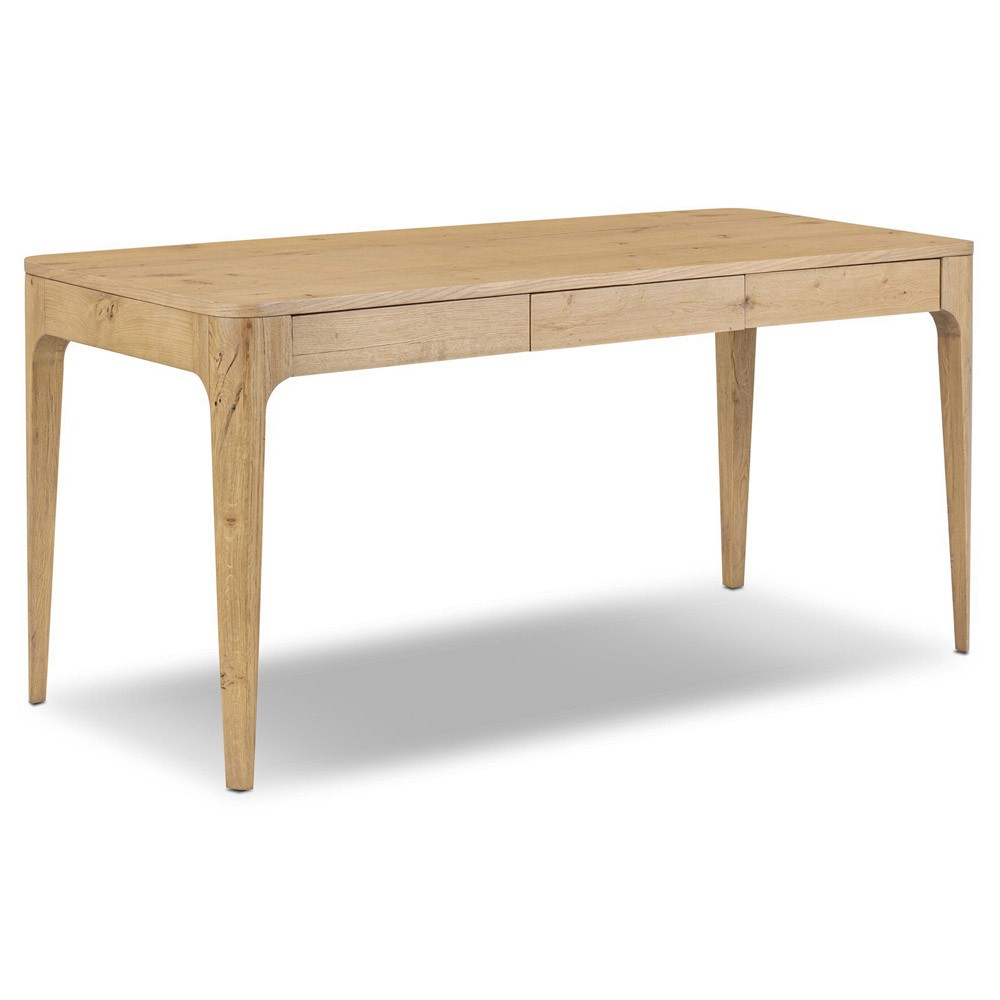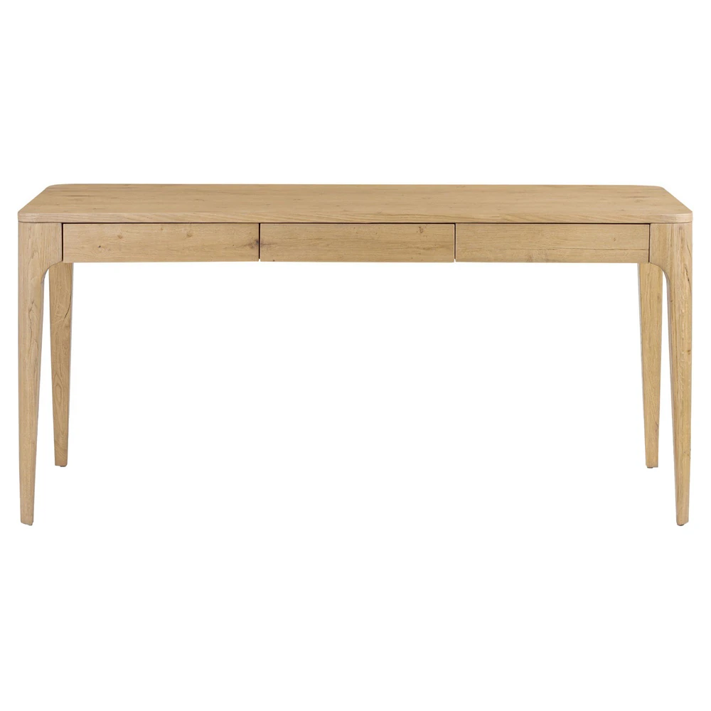 • Stacy Modern Classic Light Brown Oak Wood Brass Steel 3 Drawer Desk|Kathy Kuo Home