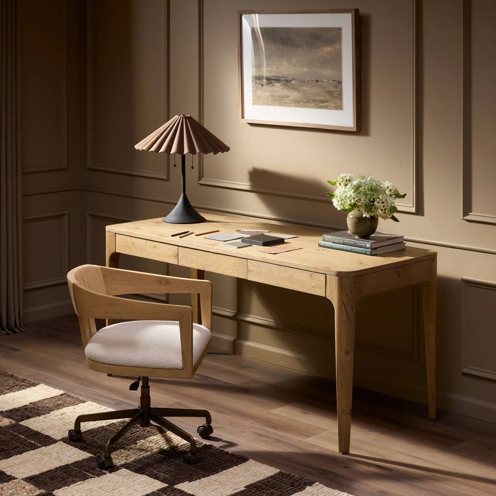 • Kortney Rustic Lodge Natural Brown Oak Wood Rotating Rectangular Desk|Kathy Kuo Home