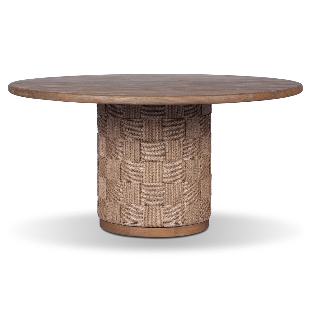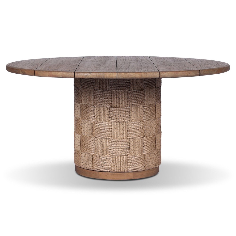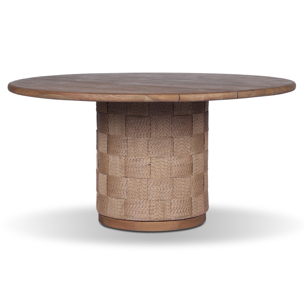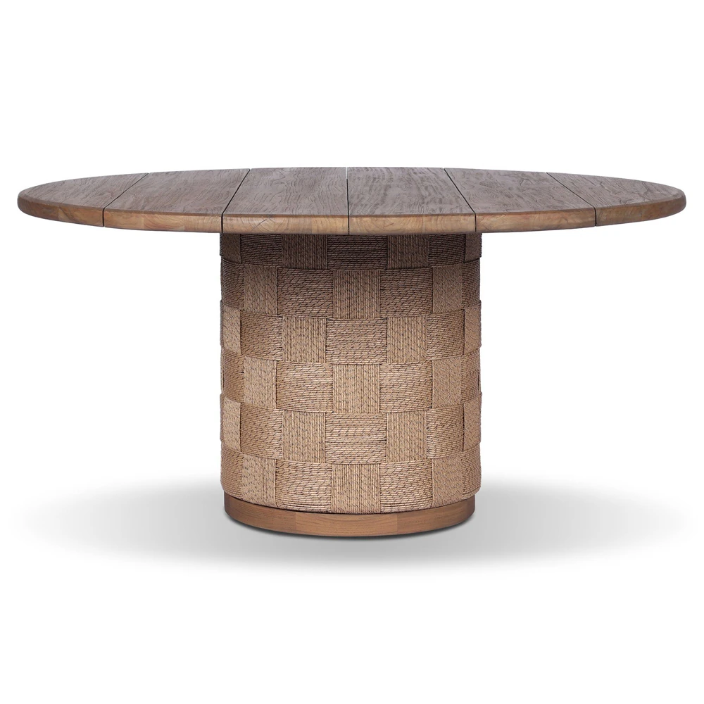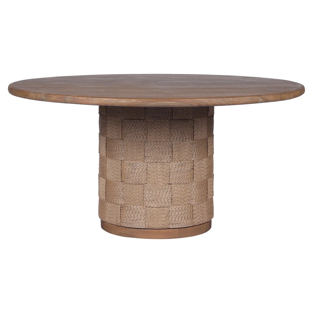 Joel Coastal Beach Stained Brown Teak Woven Round Outdoor Dining Table - 60"