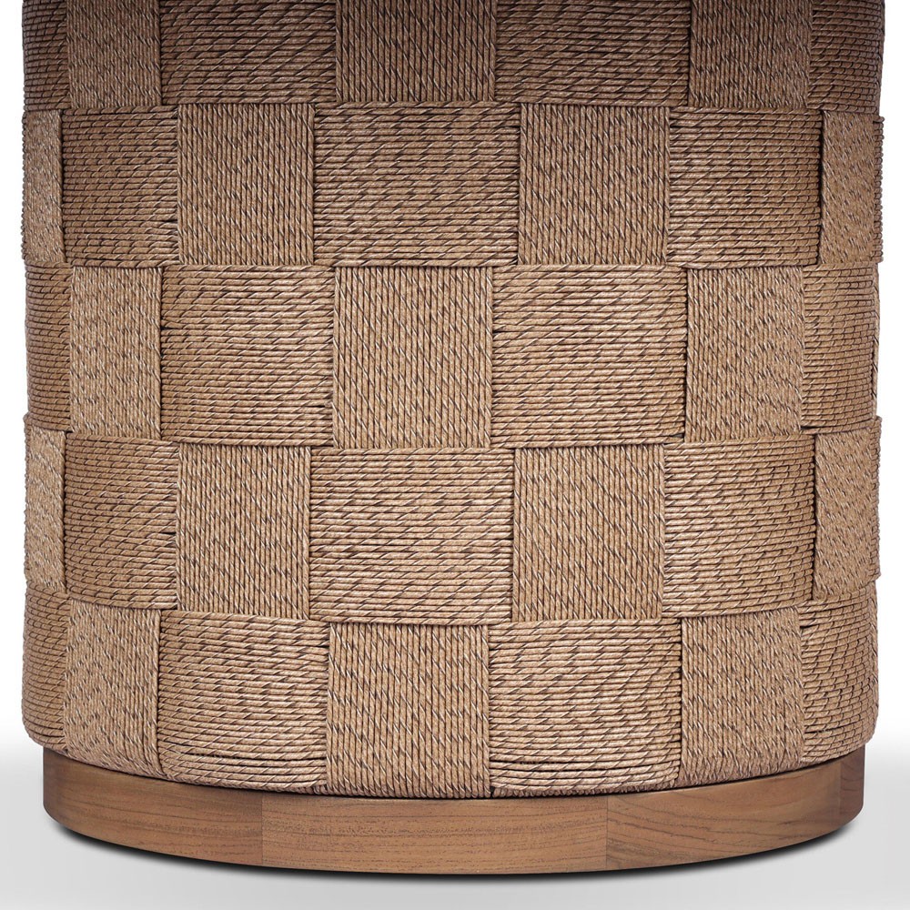 Joel Coastal Beach Stained Brown Teak Woven Round Outdoor End Table