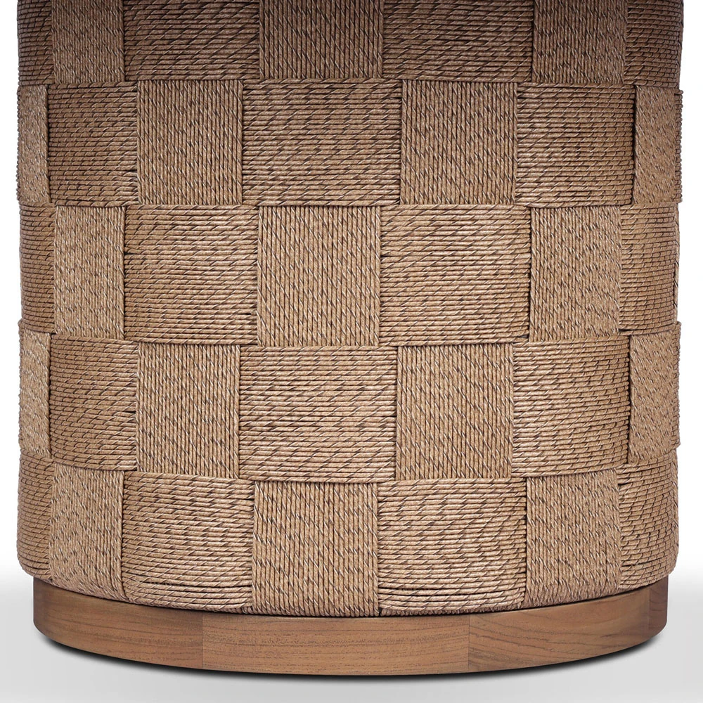 • Joel Coastal Beach Stained Brown Teak Woven Round Outdoor End Table|Kathy Kuo Home