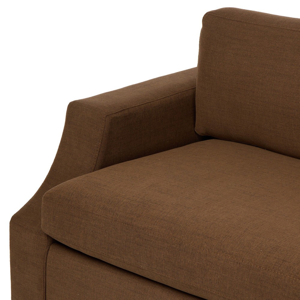 • Upholstered in brown performance fabric. Fabric content: 100% polyester; Filling in body: 90% polyurethane foam pad and 10% polyester fiber batting; Filling in seat: 95% polyurethane foam pad and 5% polyester fiber batting; Rub count: 50,000