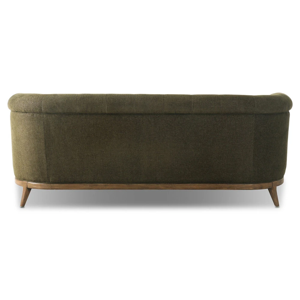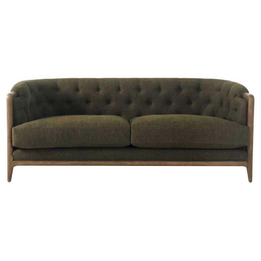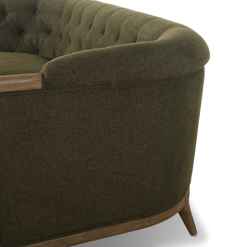 Khloe Rustic Lodge Green Performance Brown Wood Tufted Sofa - 78"
