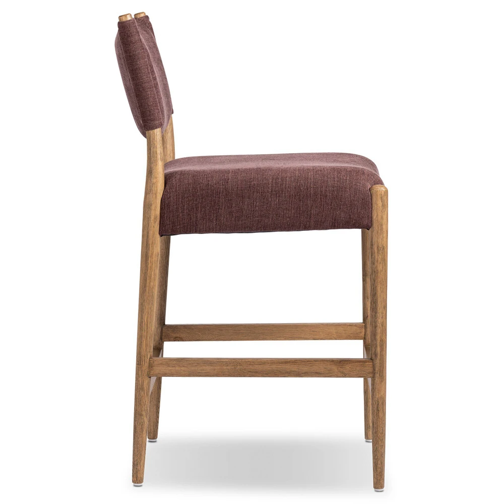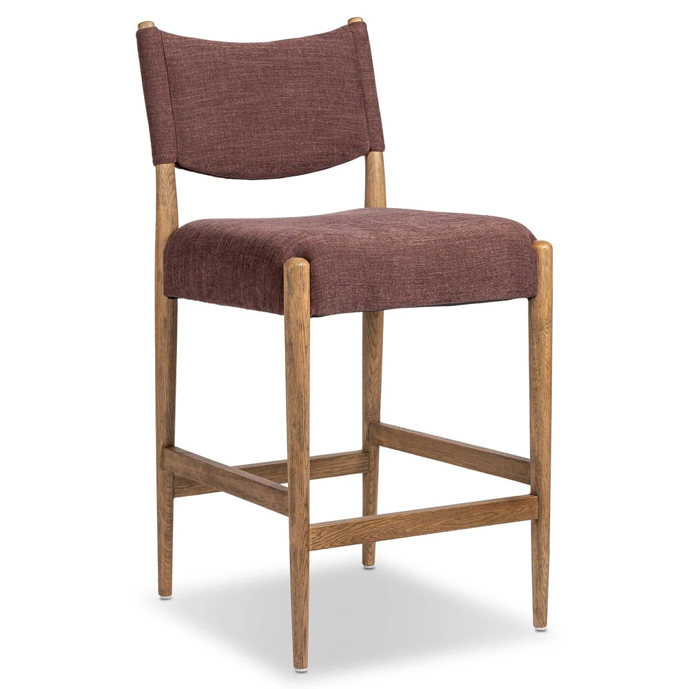 Odelia Modern Classic Maroon Velvet Brown Oak Counter Stool