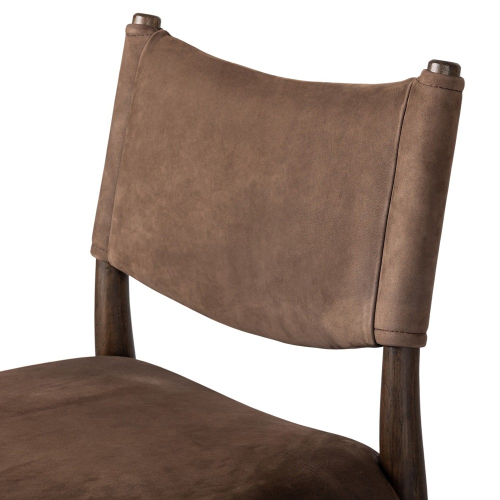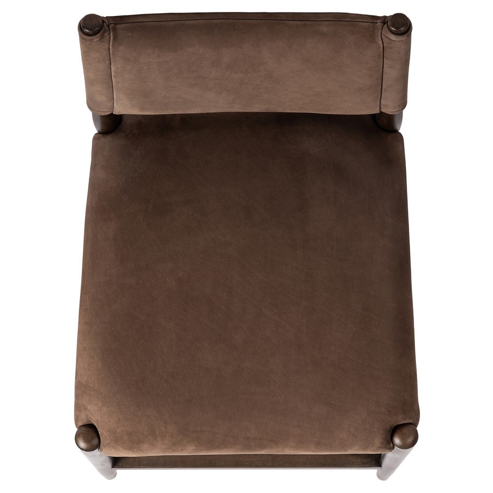 • Upholstered in brown top grain leather; Filling in Body: 90% polyurethane foam pad and 10% polyester fiber batting