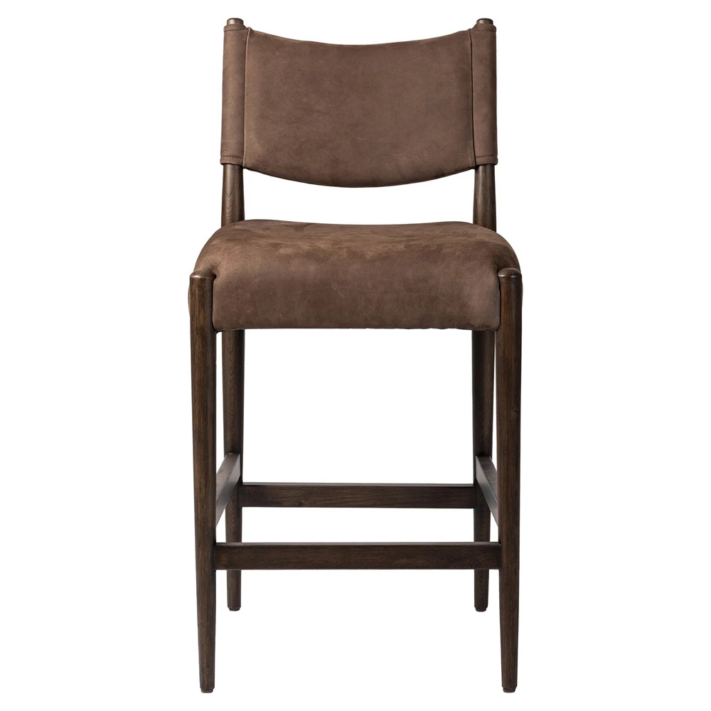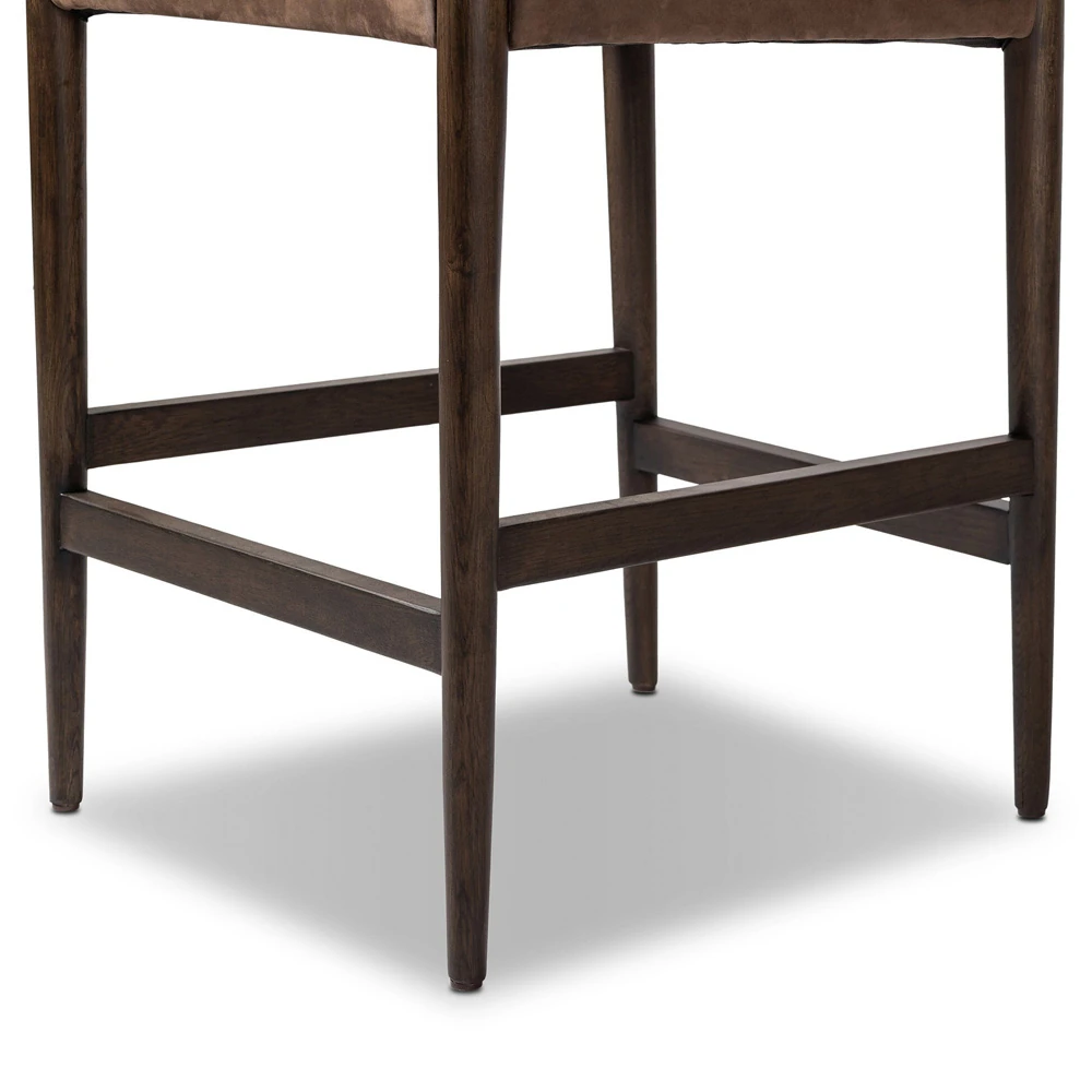 Odelia Modern Classic Brown Leather Oak Counter Stool