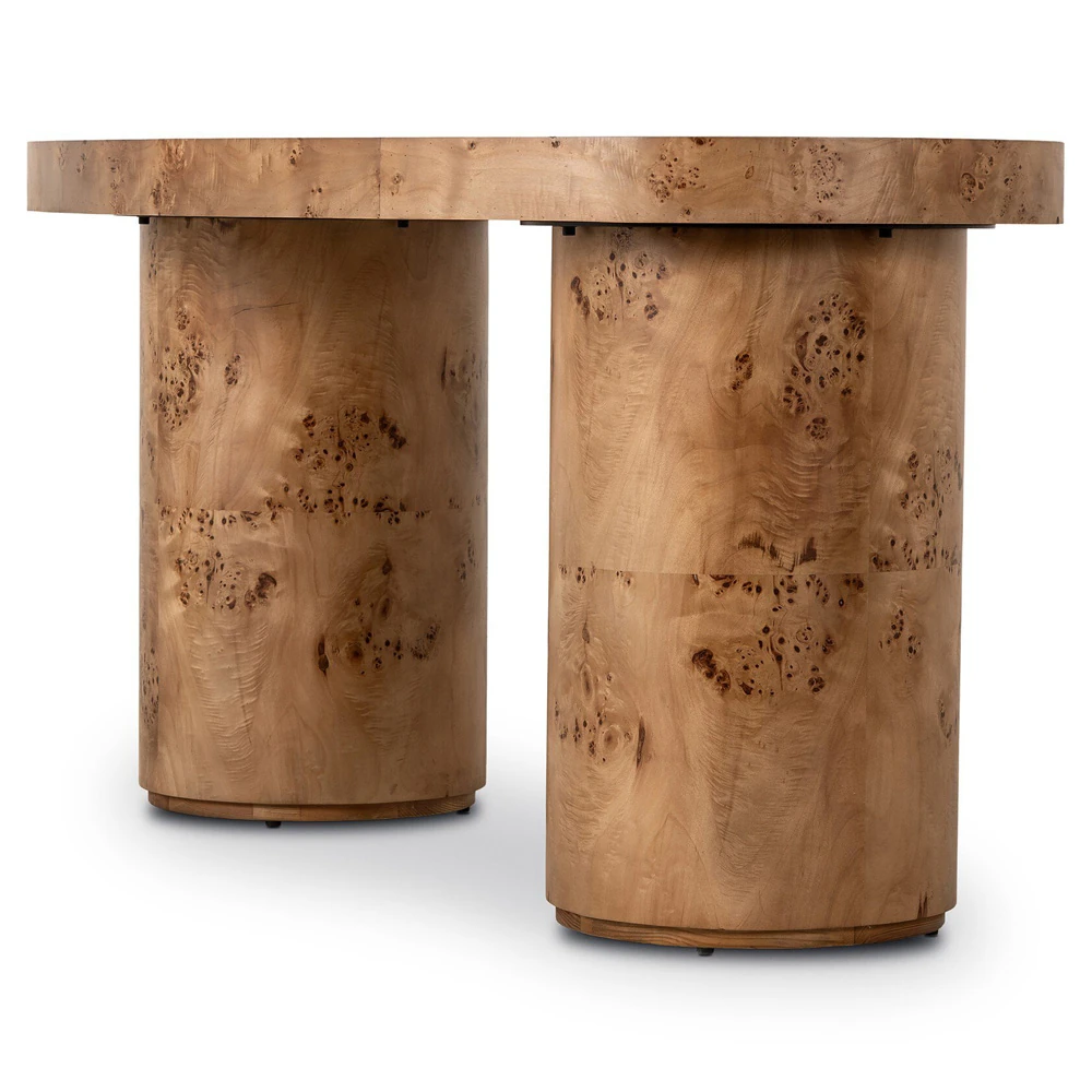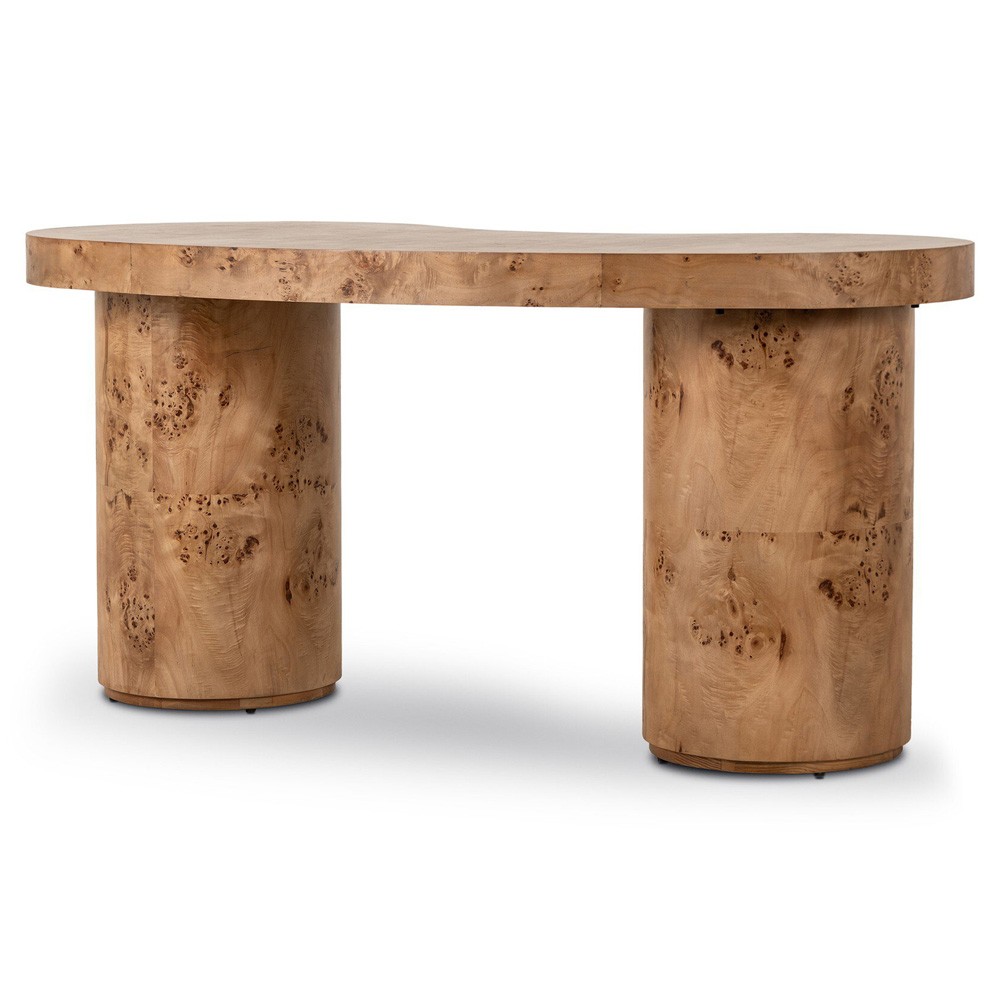 Lowen Modern Classic Brown Burl Wood Curved Desk