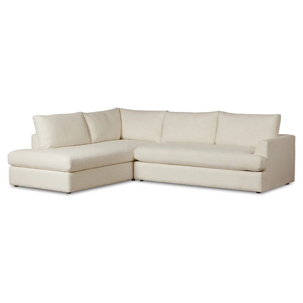 • Donato Heathered Ivory Performance Slipcovered Chaise Sectional - Left Chaise - 139"|Kathy Kuo Home