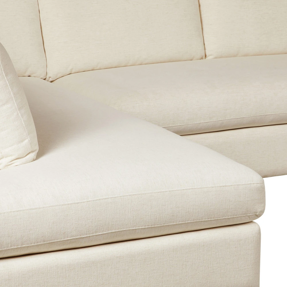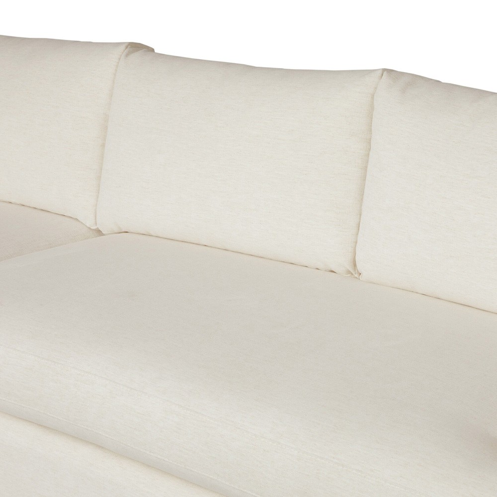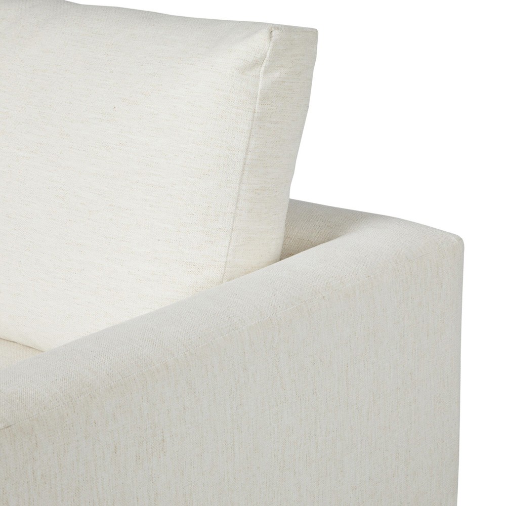 • Upholstered in cream performance fabric. Fabric content: 92% polyester and 8% flax/linen; Filling in body: 90% polyurethane foam pad and 10% polyester fiber batting; Filling in seat: 95% polyurethane foam pad and 5% polyester fiber batting; Rub count: 50,000