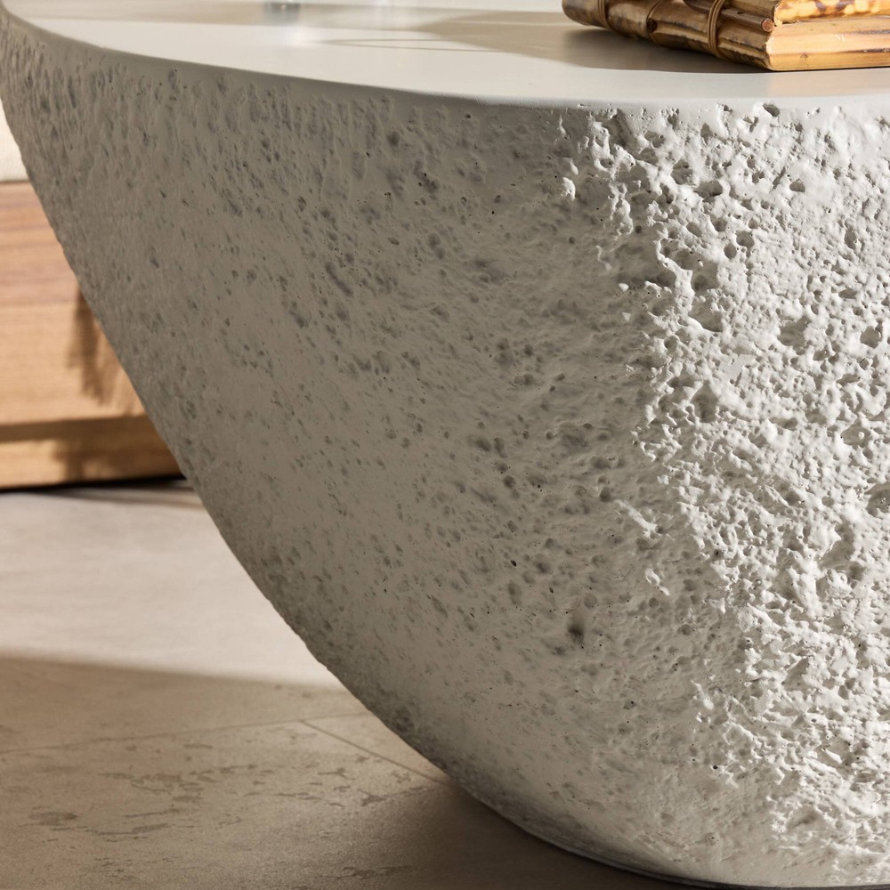 Aurore Modern Classic Aged White Concrete Round Outdoor Coffee Table