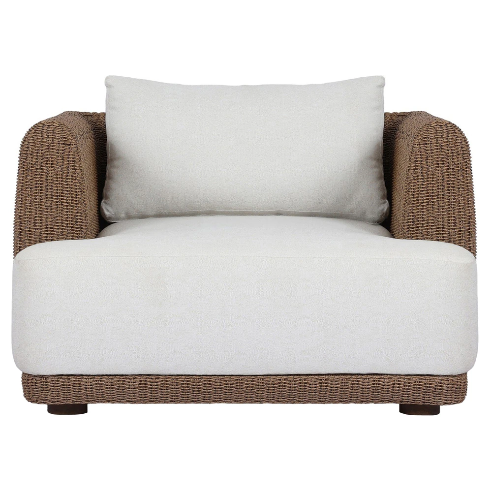 Ivanna Coastal Beach Beige Woven Wicker Outdoor Lounge Chair