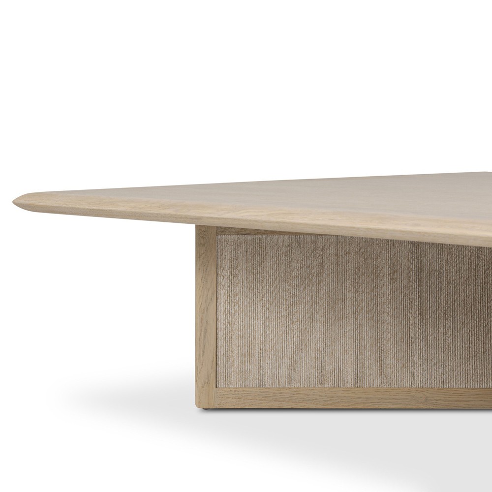 • Features a square top and a panel-style base wrapped in woven paper cord for added texture