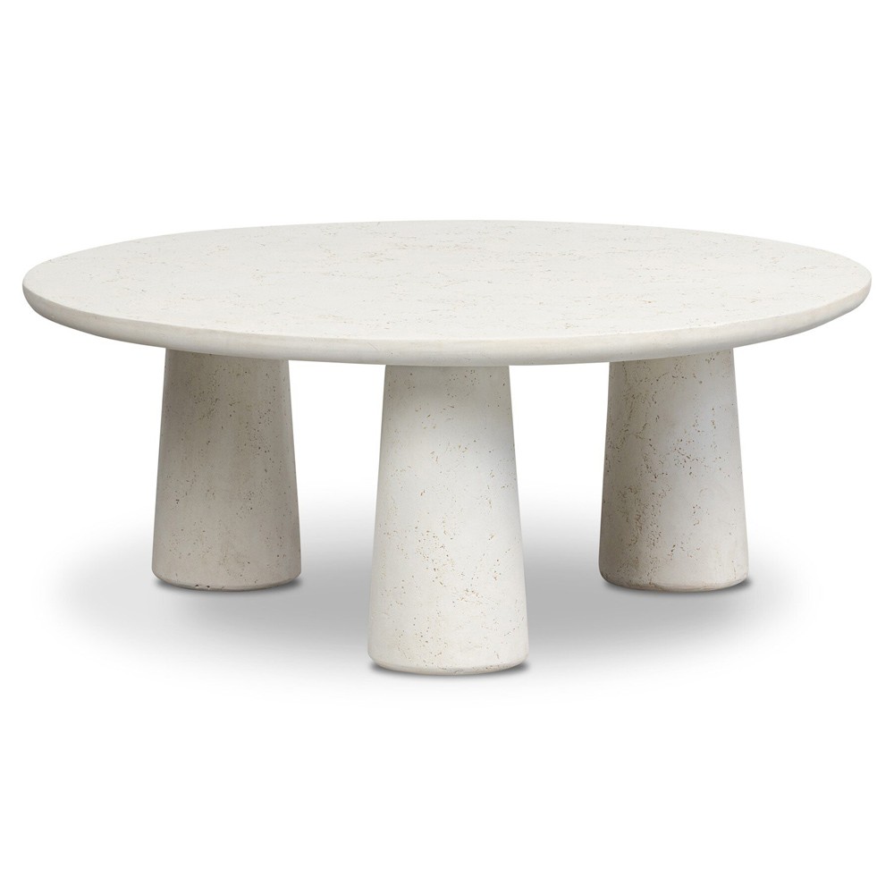 Aurore Modern Classic Aged White Concrete Round Outdoor Coffee Table
