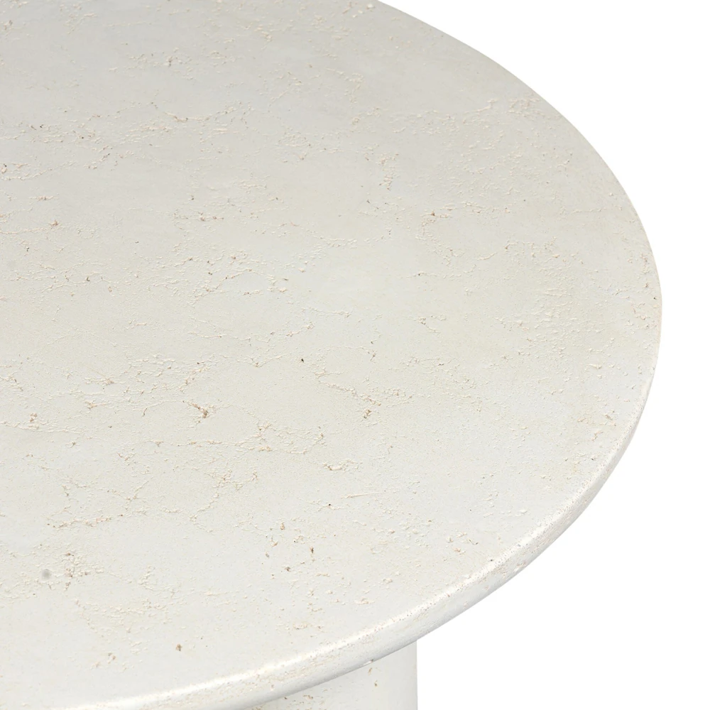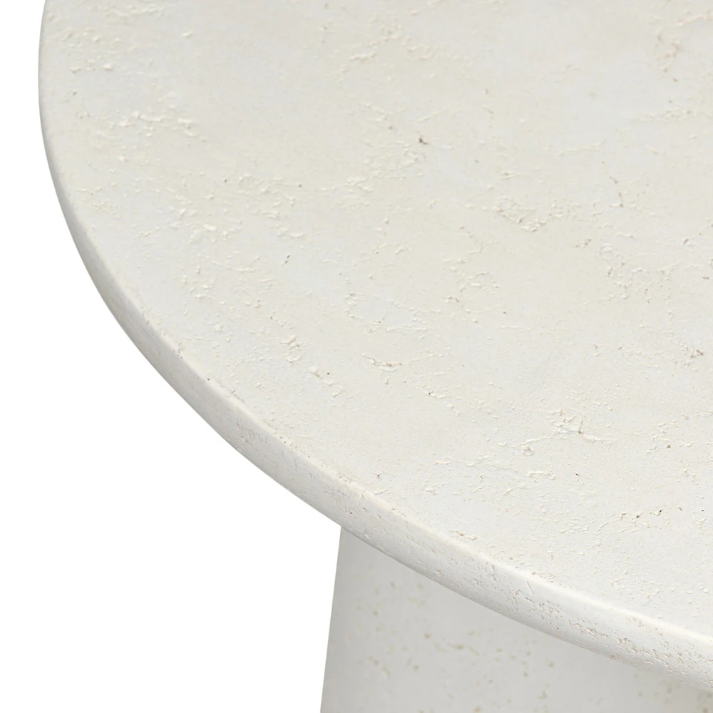 Aurore Modern Classic Aged White Concrete Round Pedestal Outdoor End Table