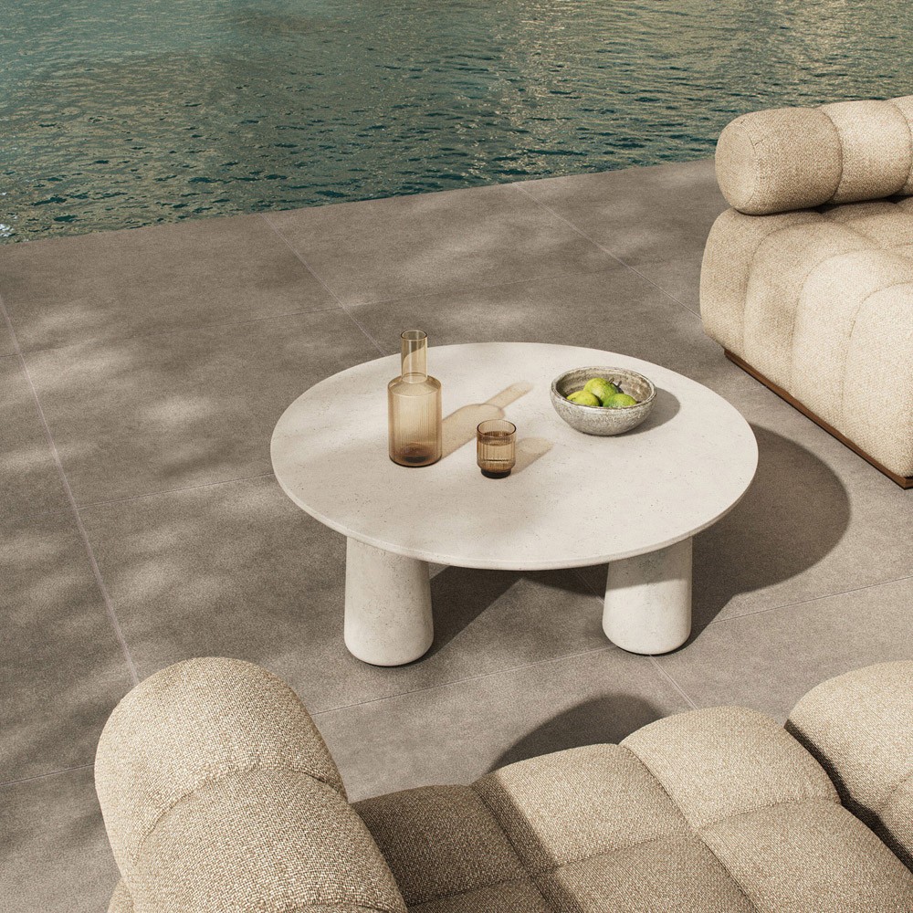 Maya Modern Classic Beige Concrete Round Outdoor Coffee Table