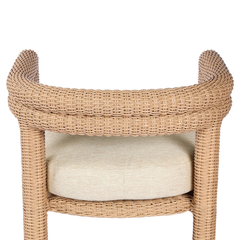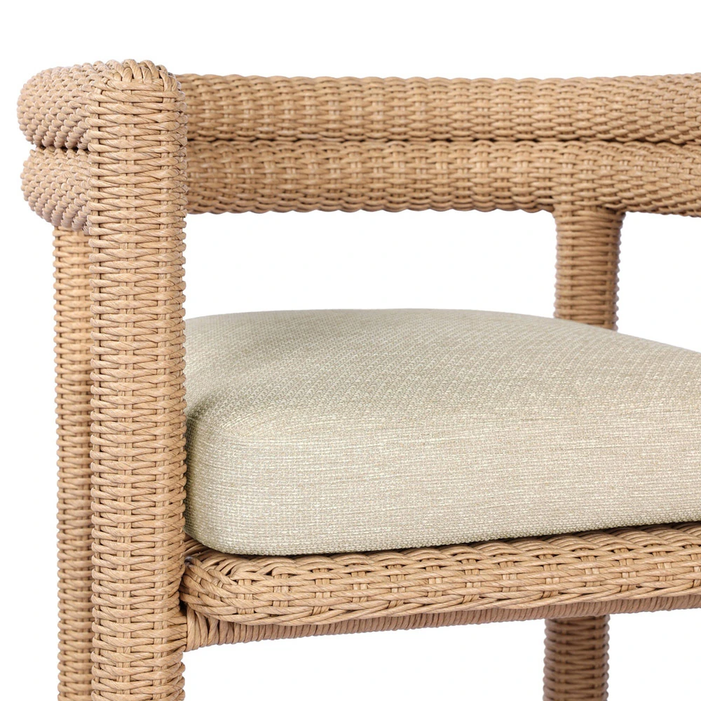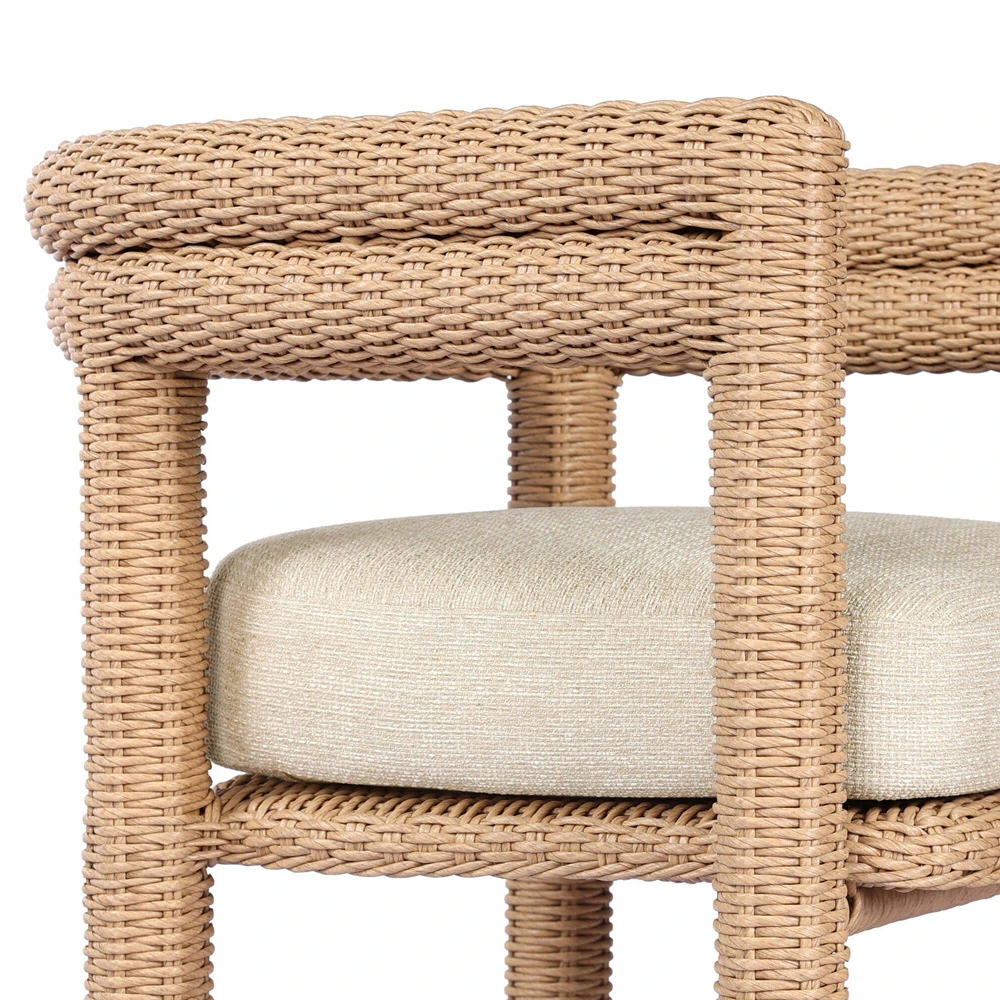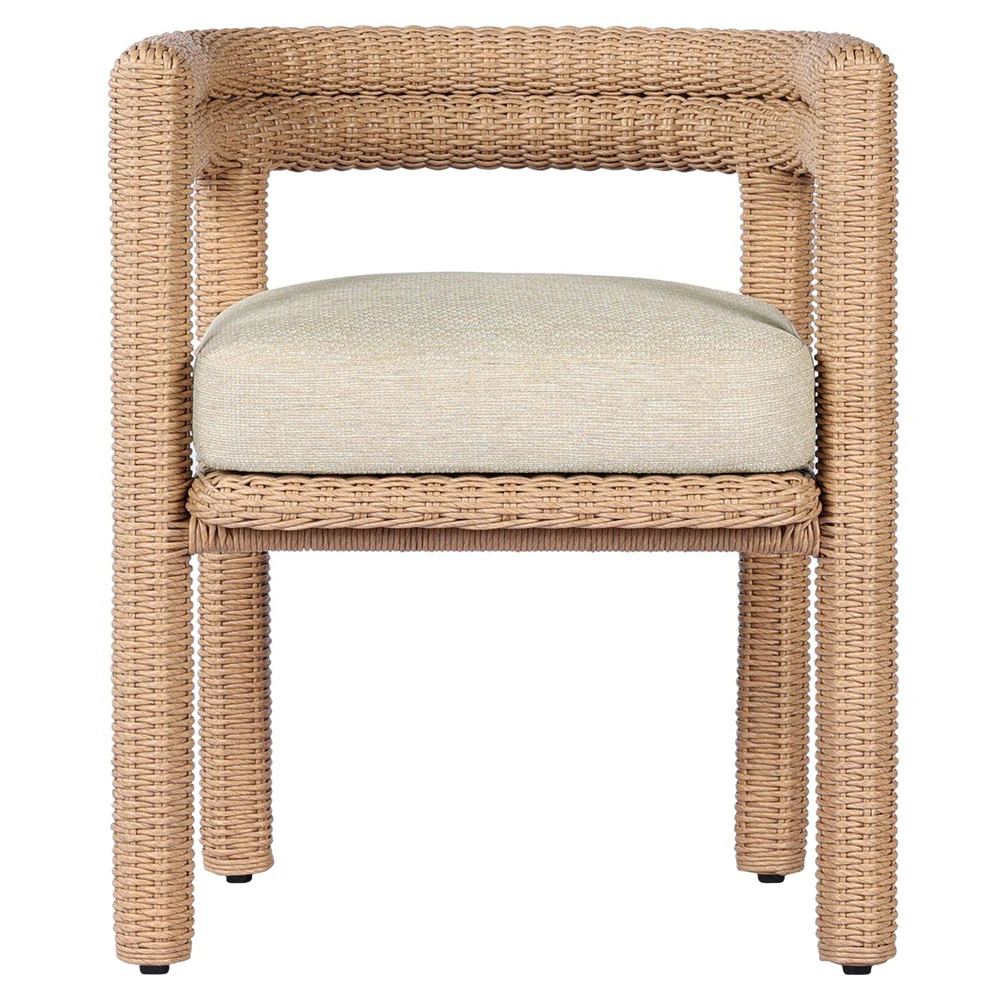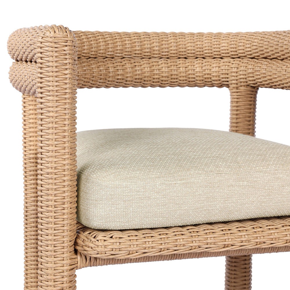 Claire Coastal Beach Cream Woven Wicker Outdoor Dining Arm Chair