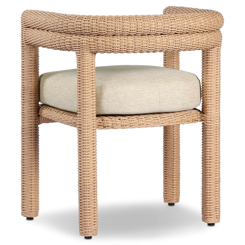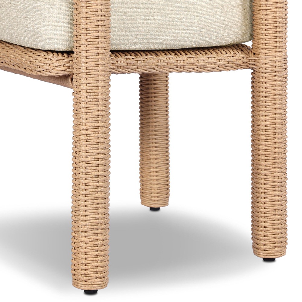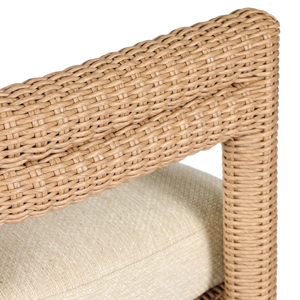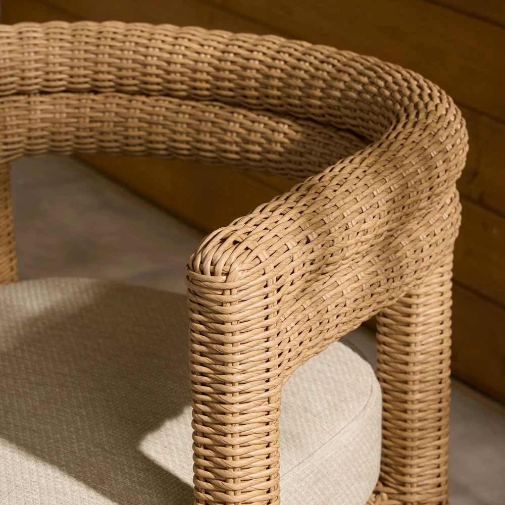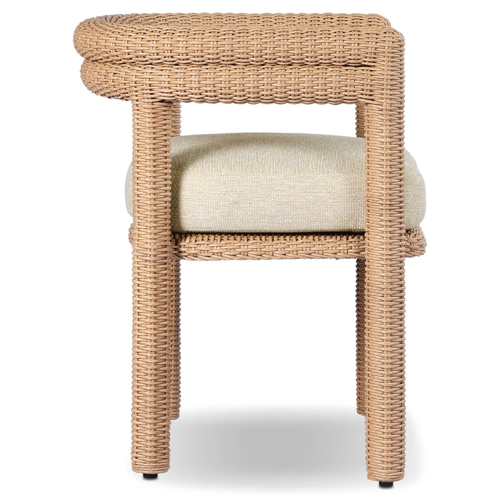 Claire Coastal Beach Cream Woven Wicker Outdoor Dining Arm Chair