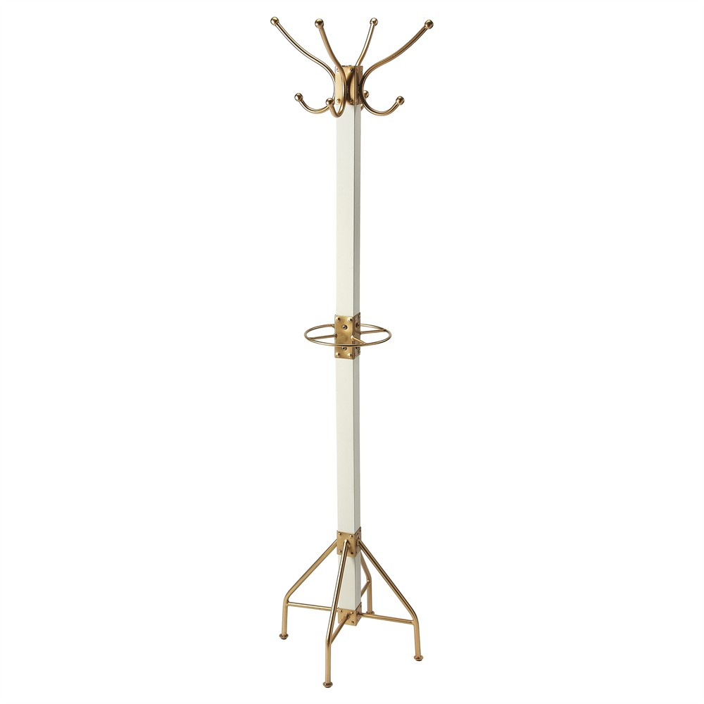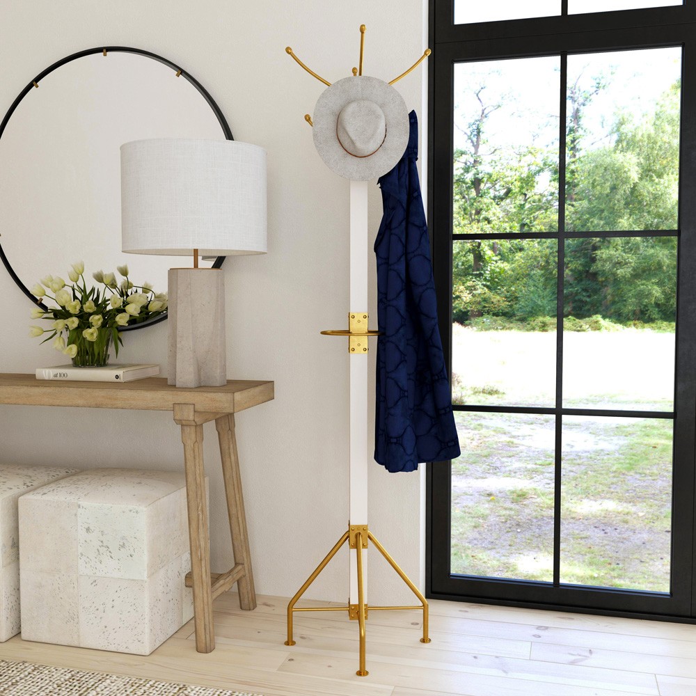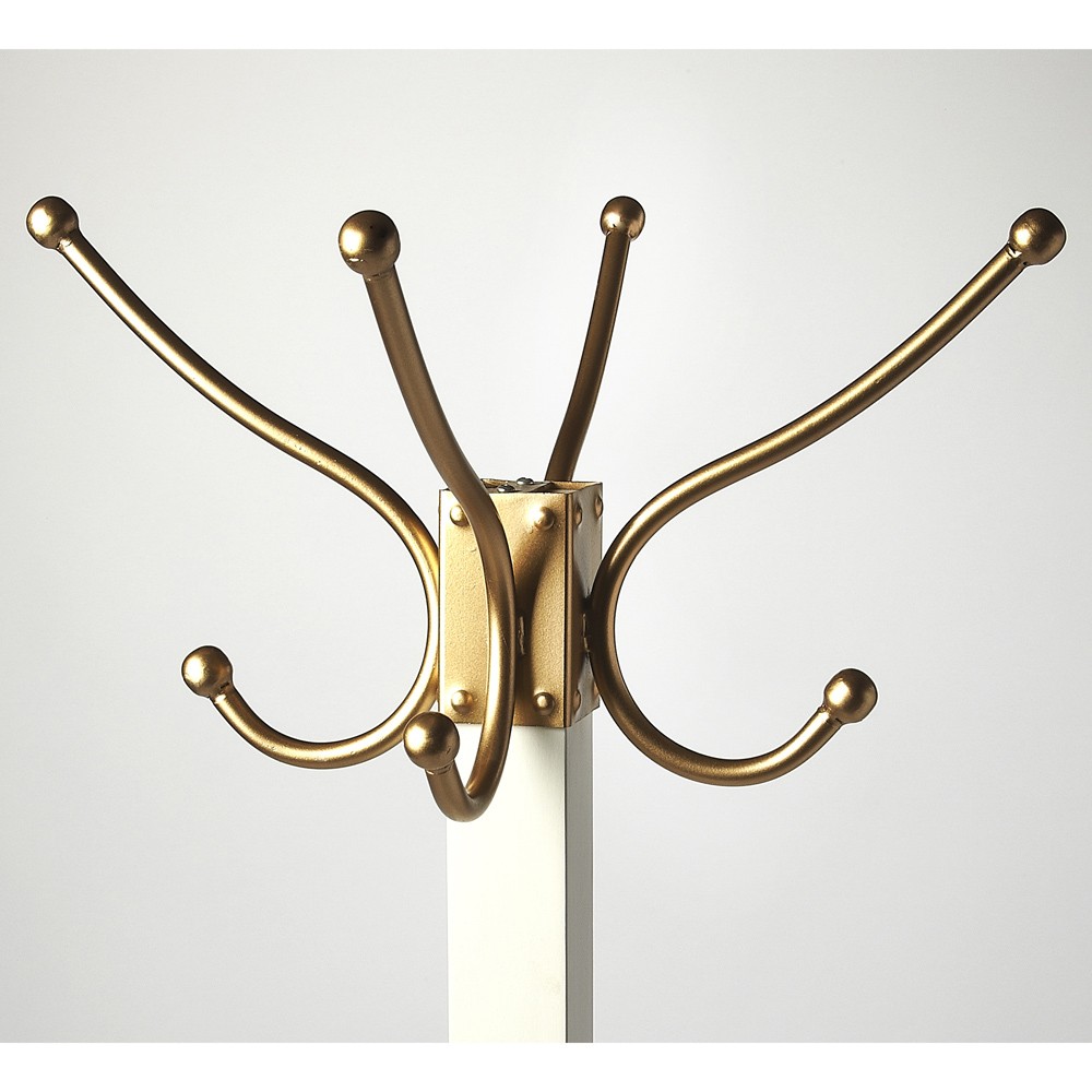 Marcia Traditional White Mango Wood Gold Iron Coat Rack