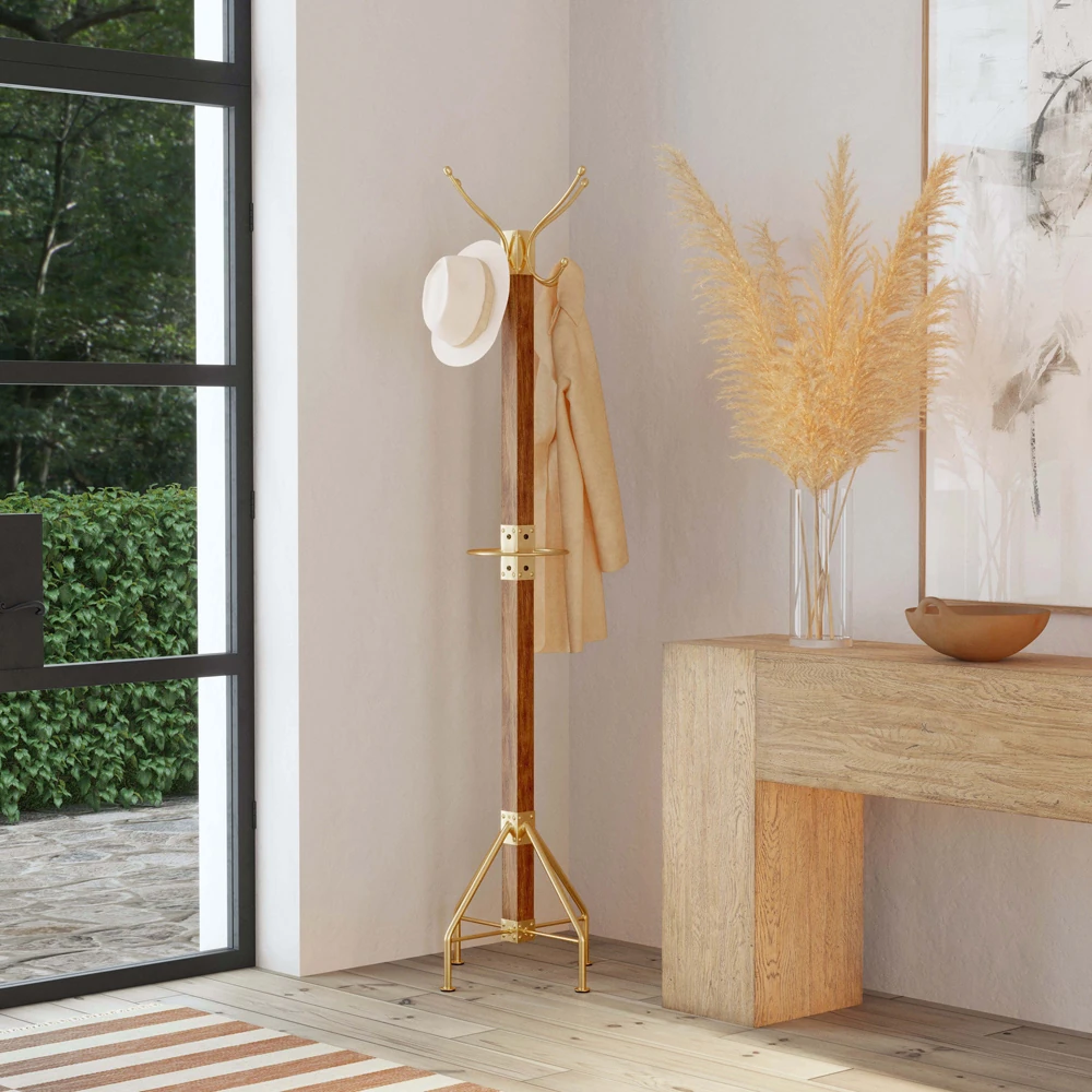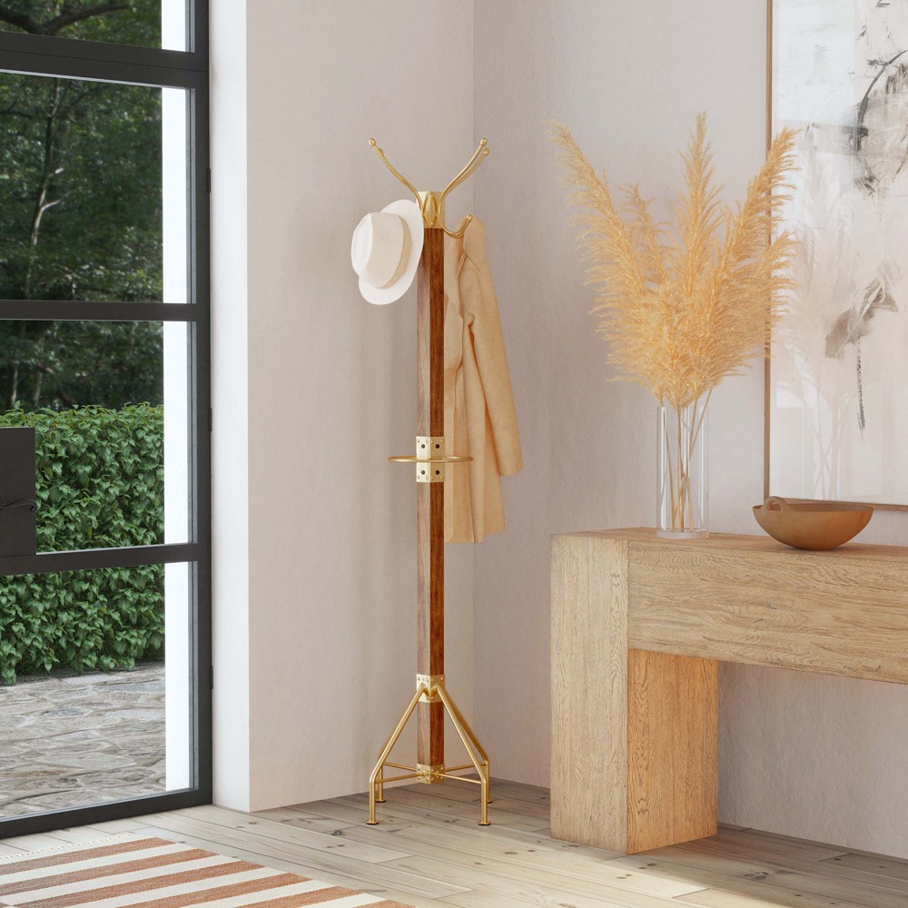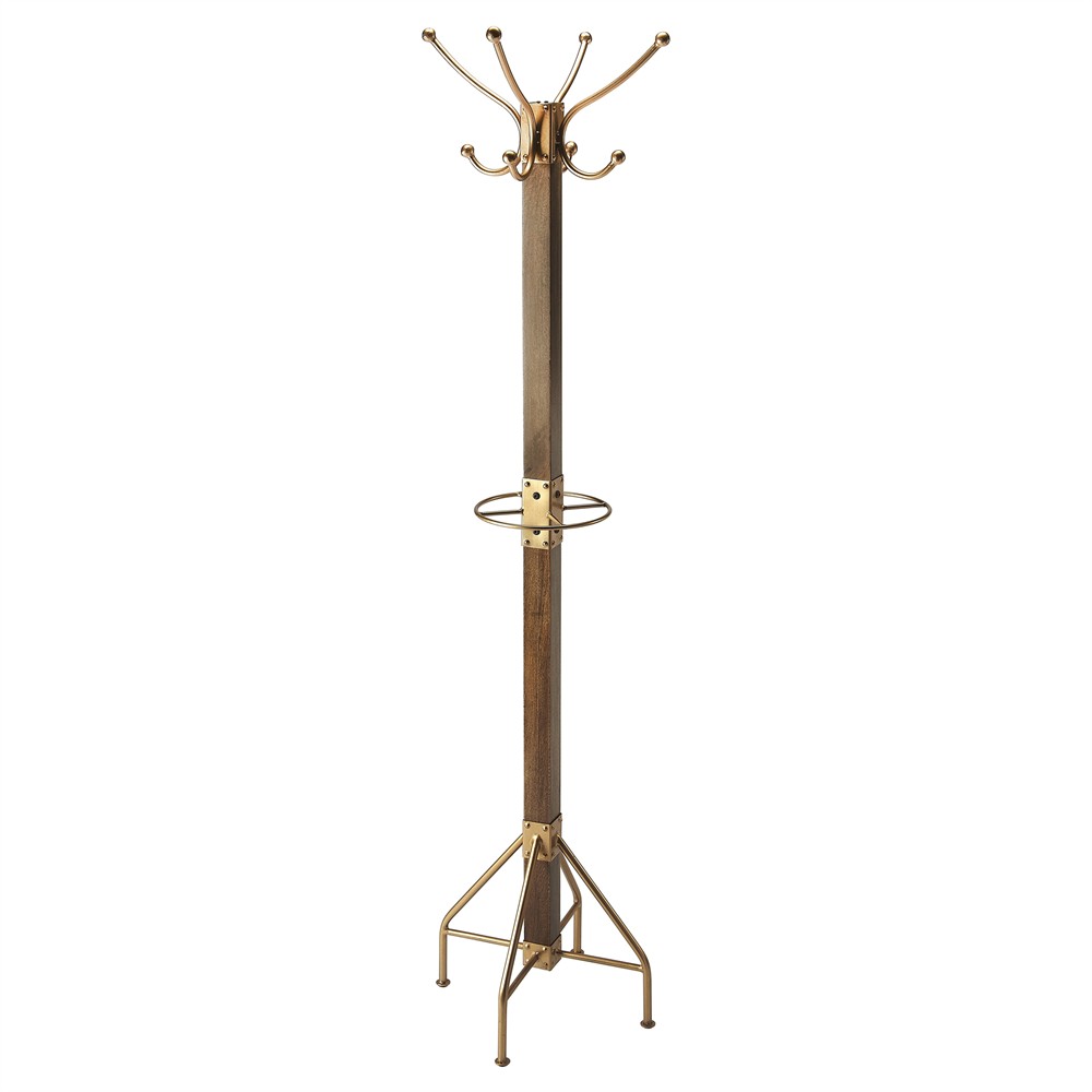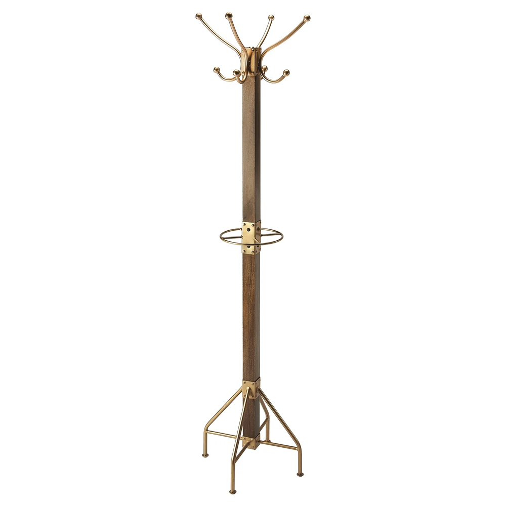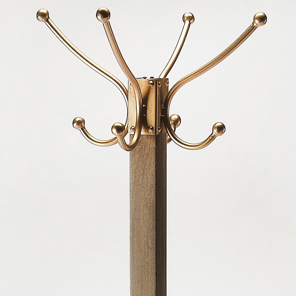 Marcia Traditional Brown Mango Wood Gold Iron Coat Rack