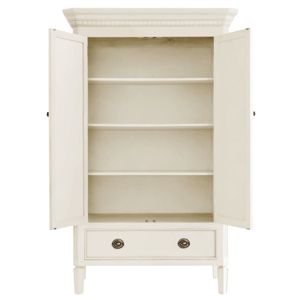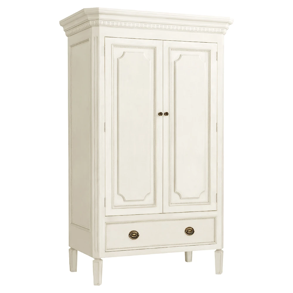 Camilla French Country Antique White Wood Armoire