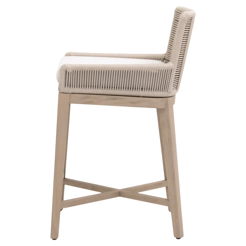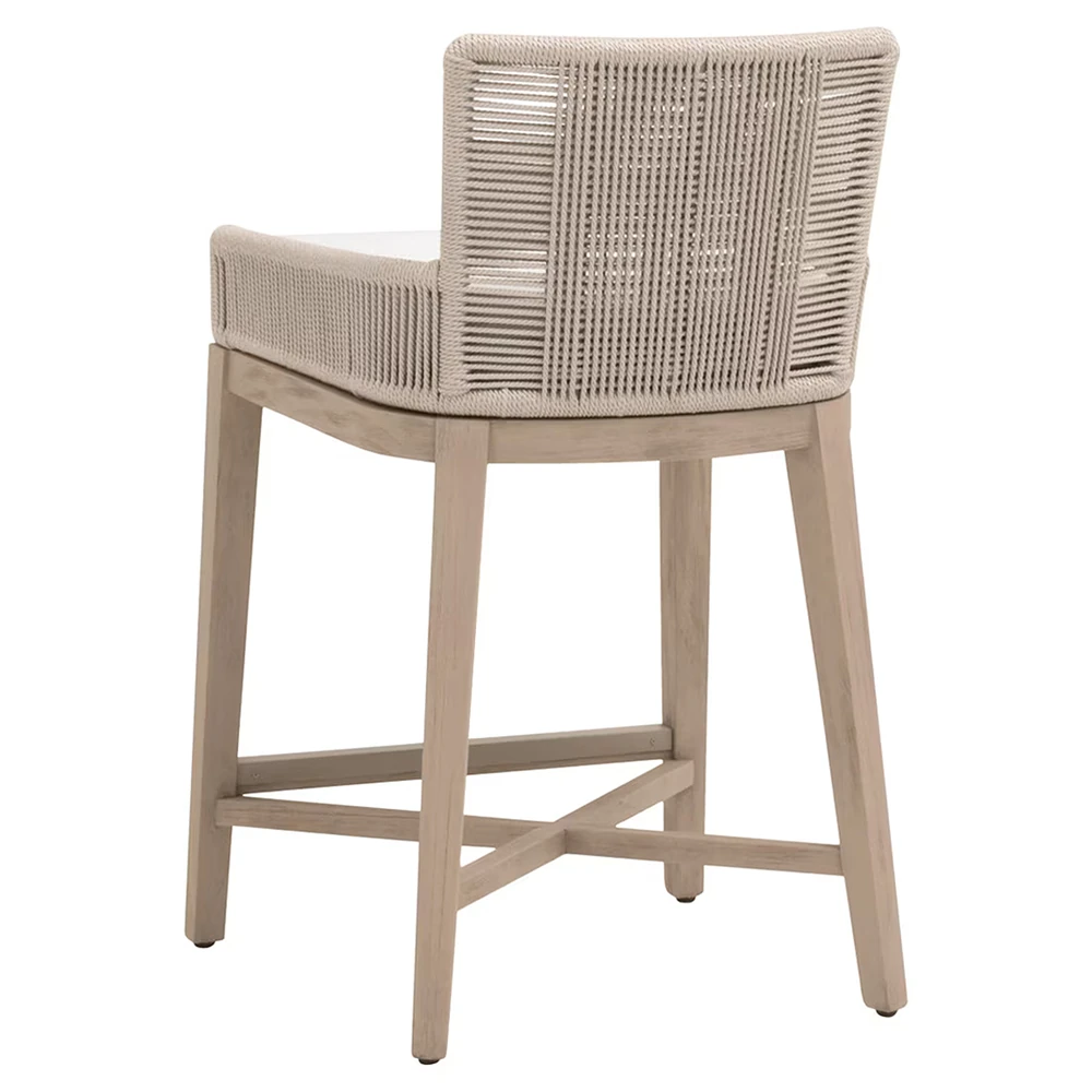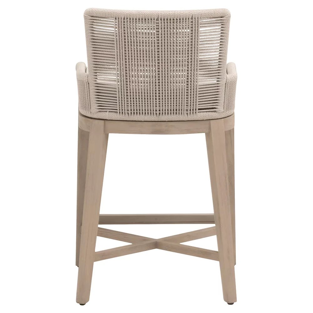 Kailey Coastal Taupe Woven Rope Grey Teak Outdoor Counter Stool