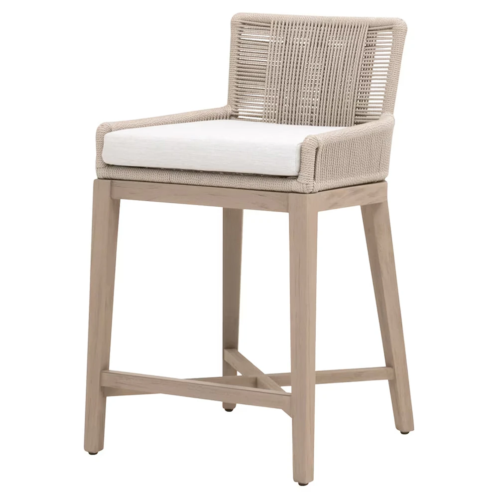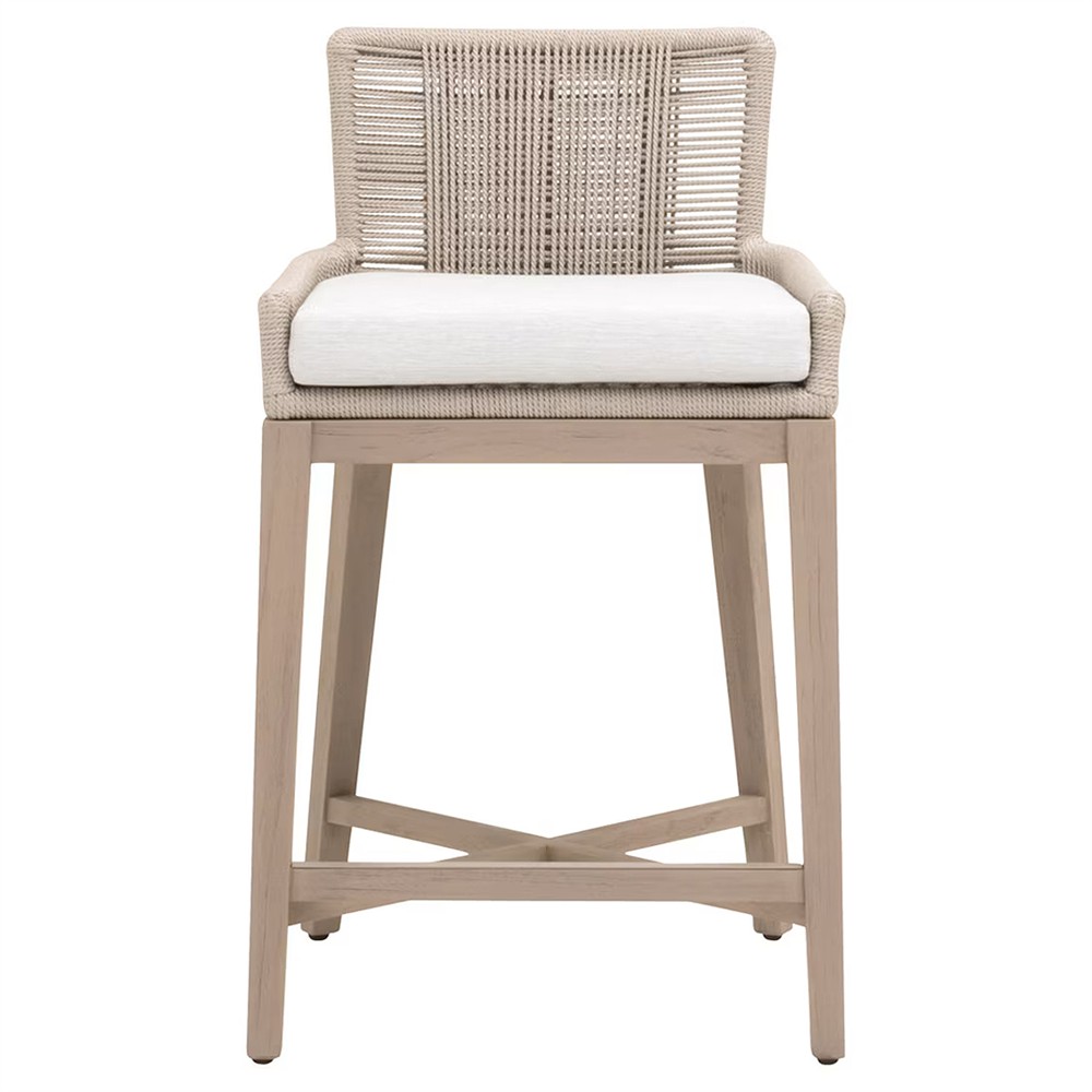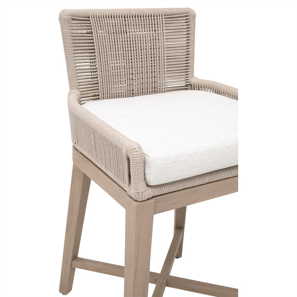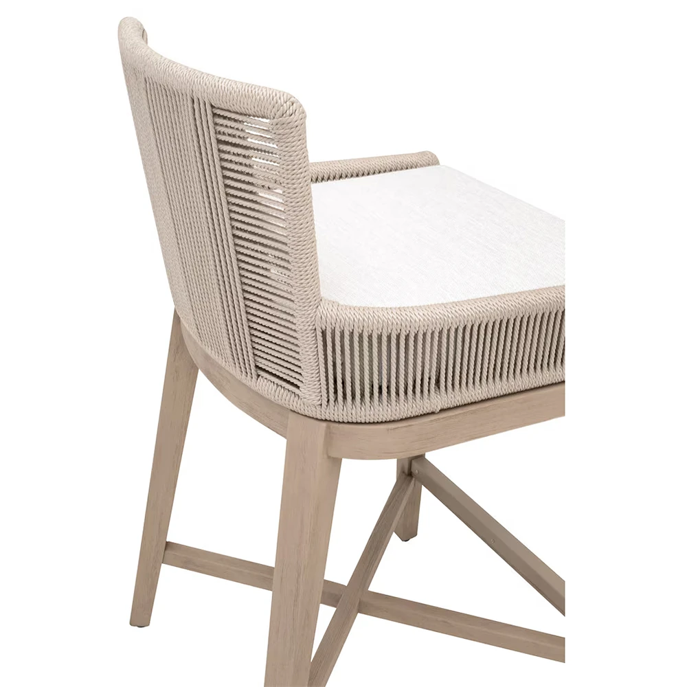 Kailey Coastal Taupe Woven Rope Grey Teak Outdoor Counter Stool