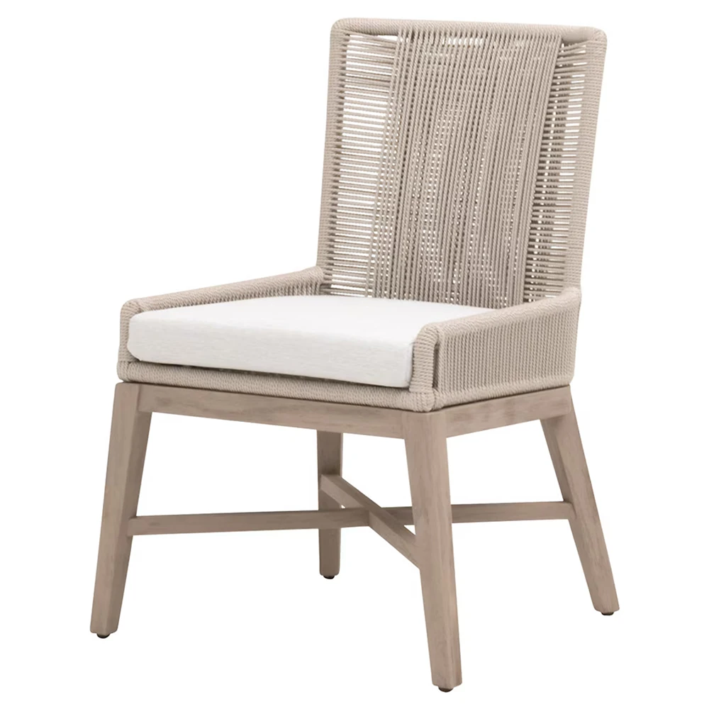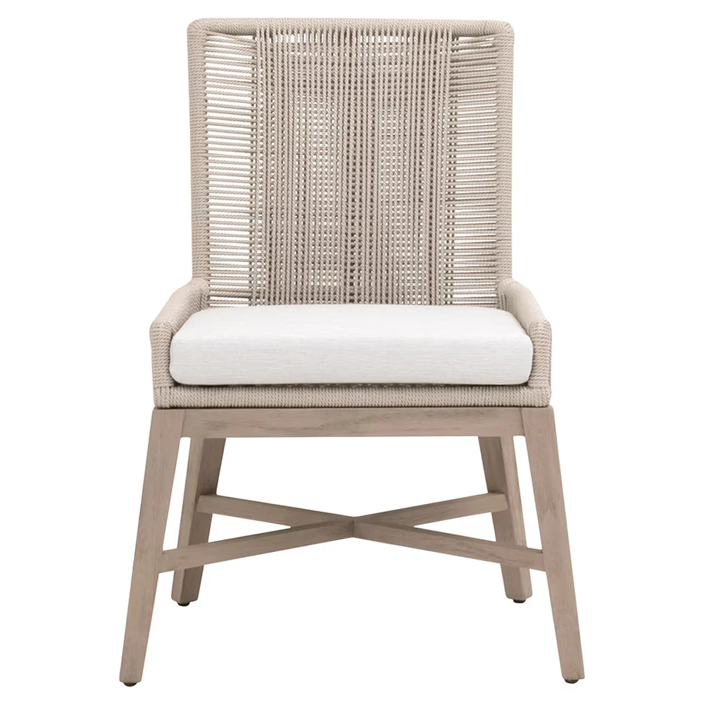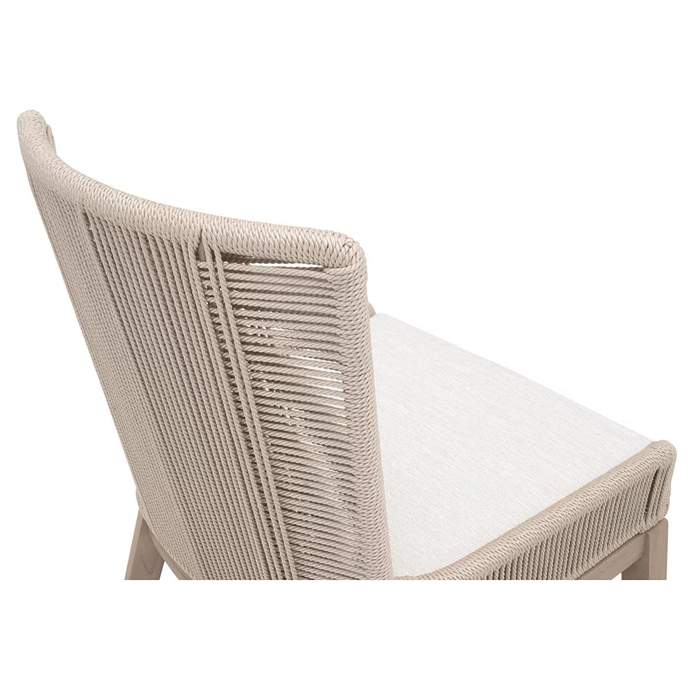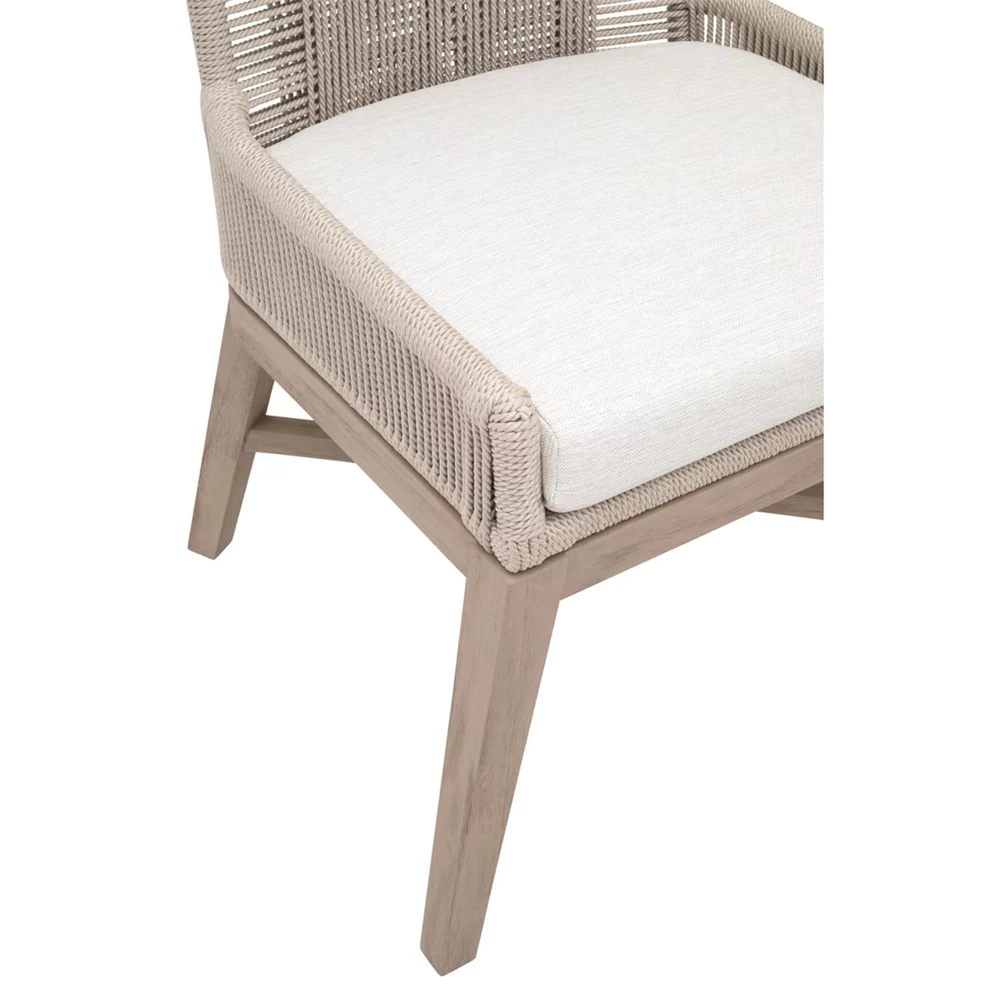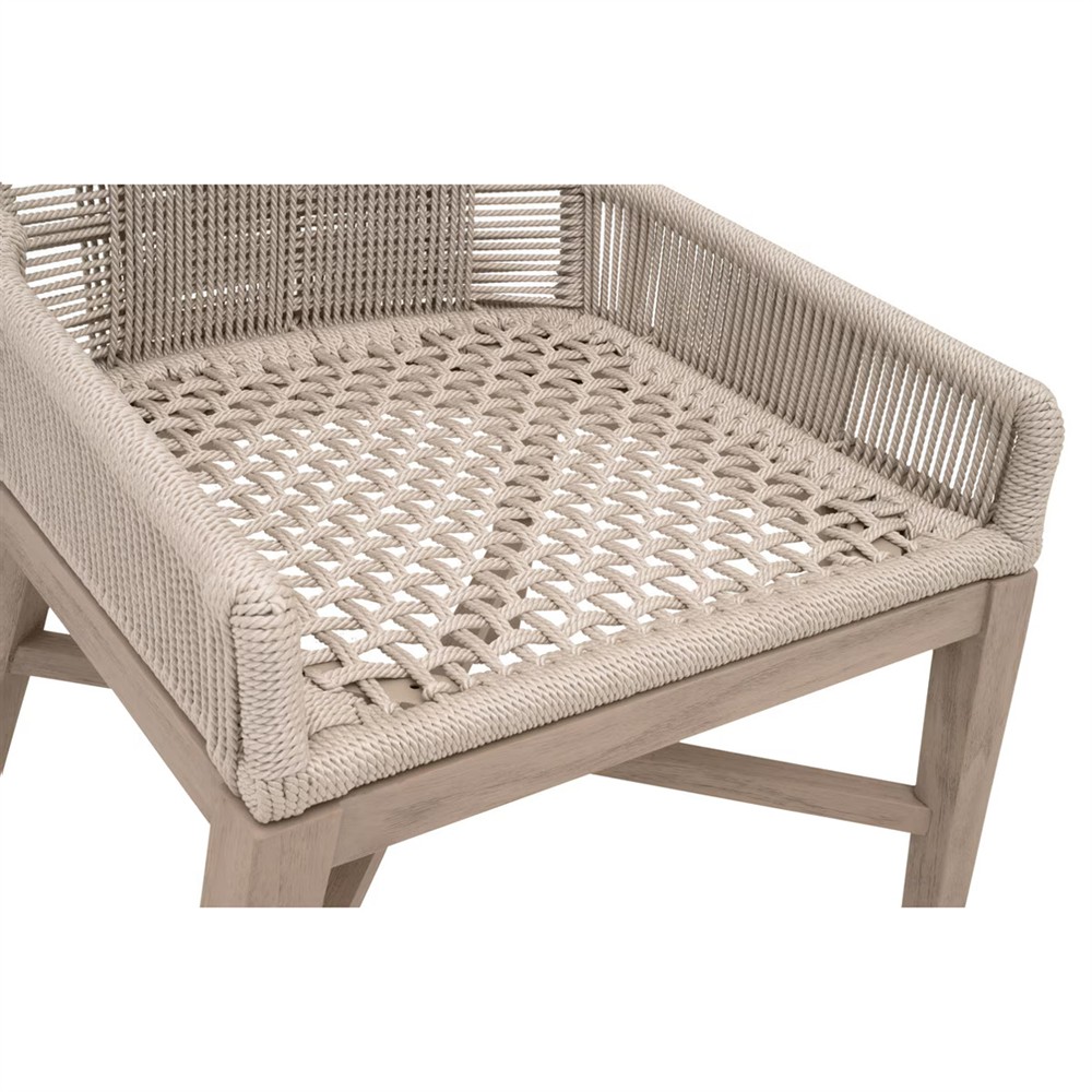 Cheryl Modern Light Grey Cushion Woven Rope Natural Teak Outdoor Dining Arm Chair