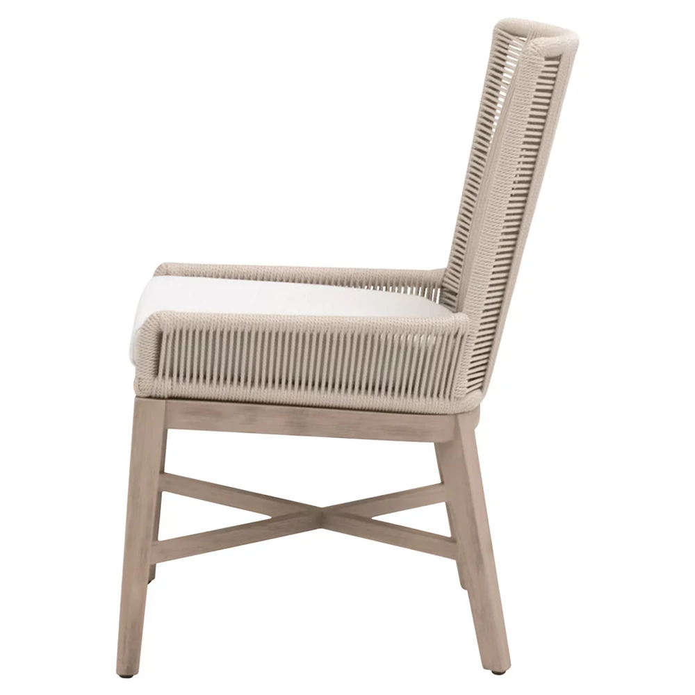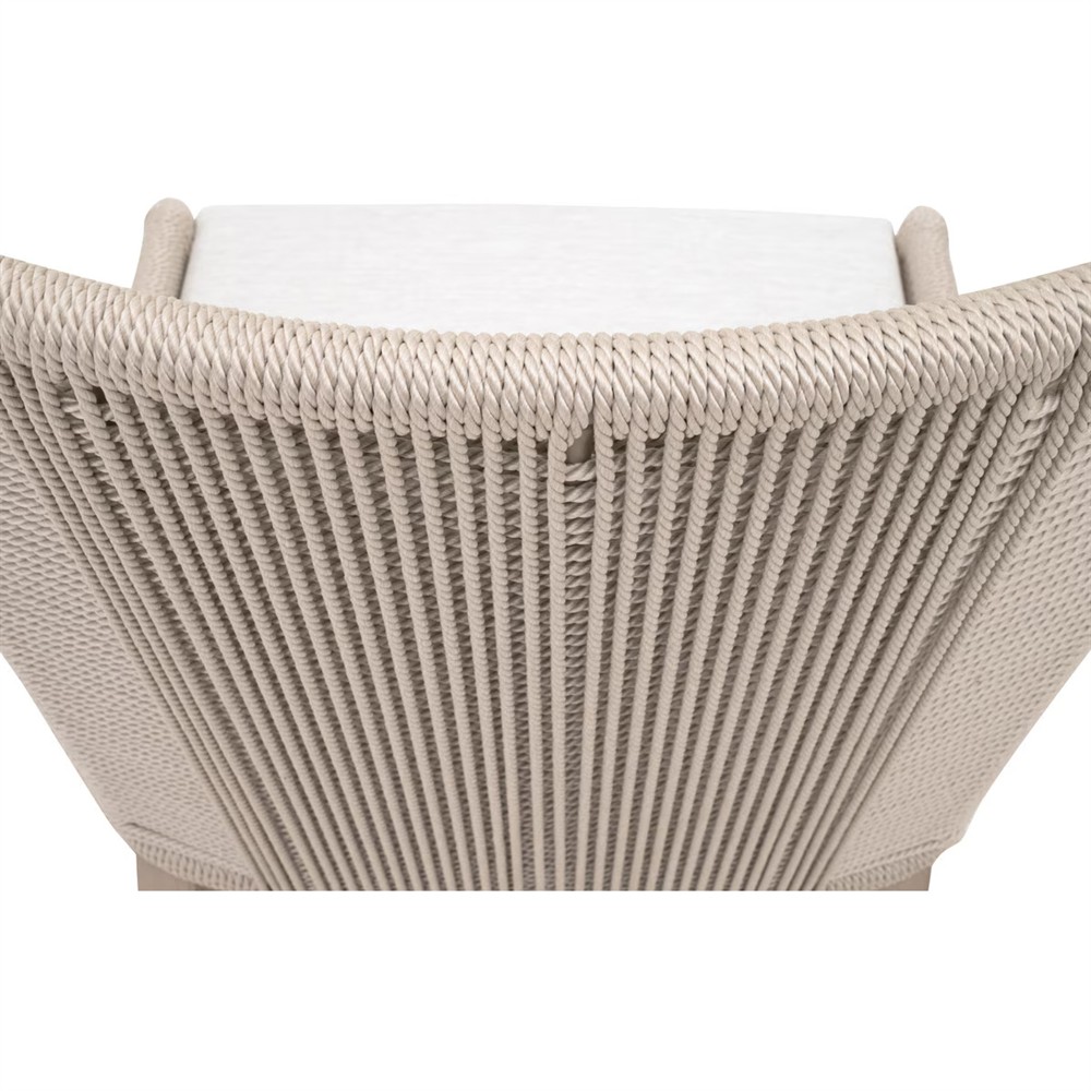 Rose Coastal Off White Upholstered Seat Woven Rope Wood Outdoor Dining Arm Chair