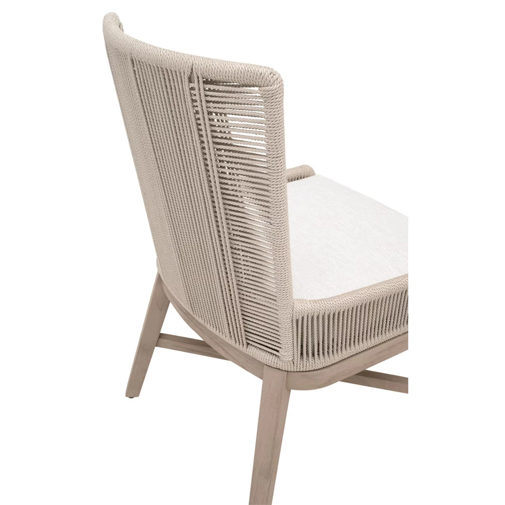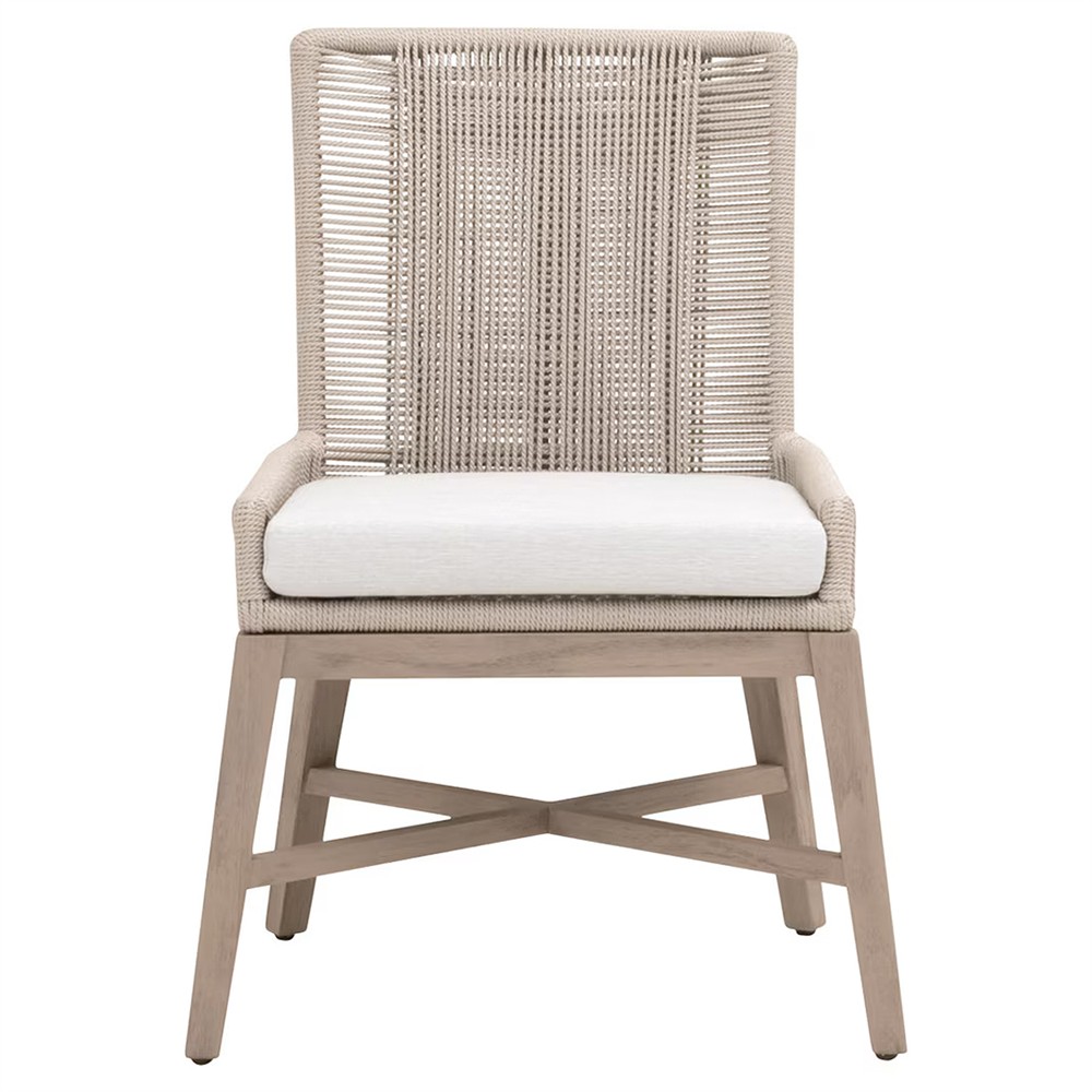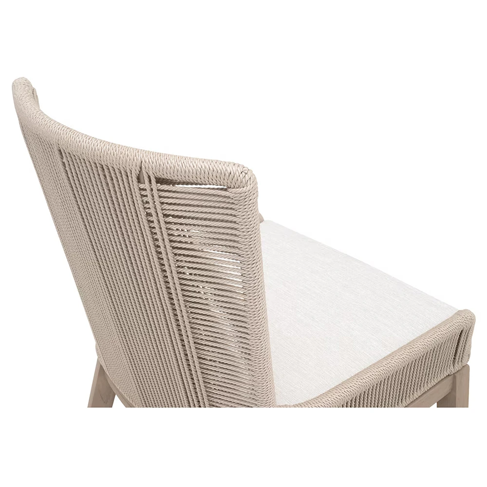 • Cheryl Modern White Cushion Woven Rope Natural Teak Outdoor Dining Arm Chair|Kathy Kuo Home