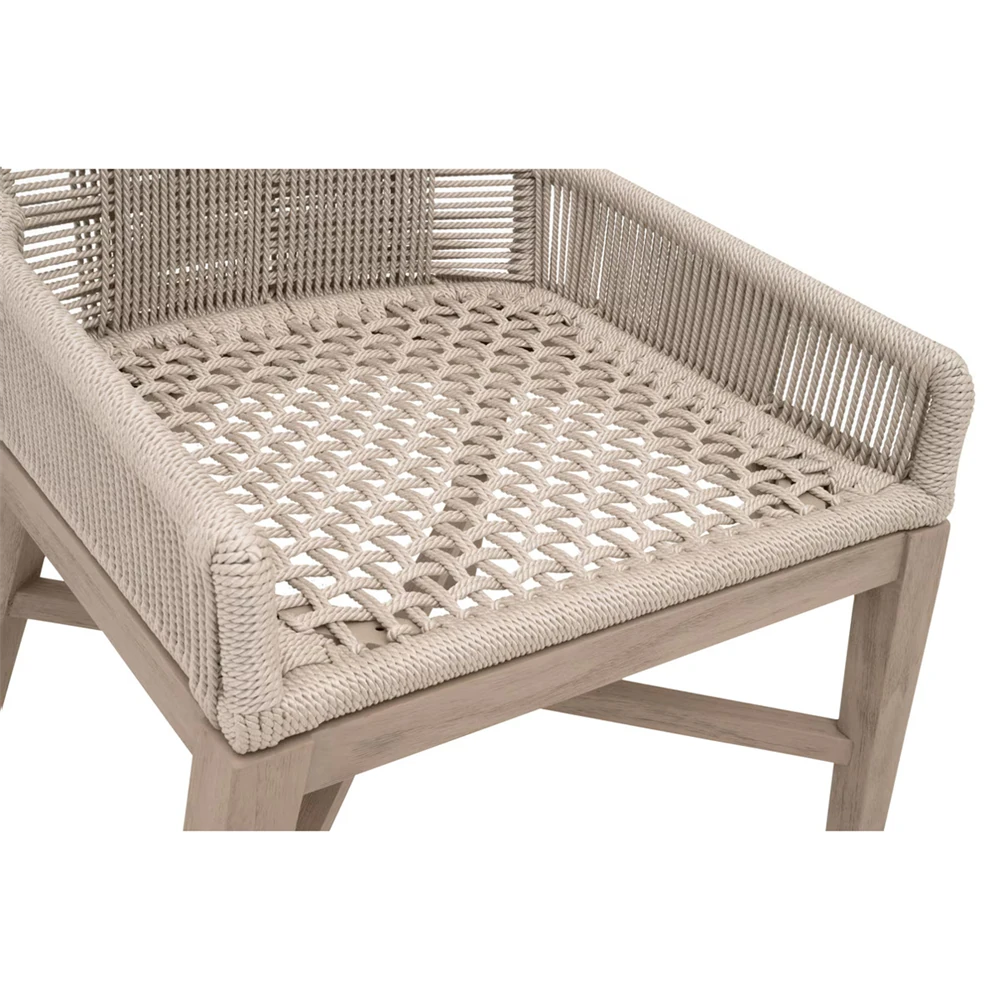 • Cheryl Modern Light Grey Cushion Woven Rope Natural Teak Outdoor Dining Arm Chair|Kathy Kuo Home