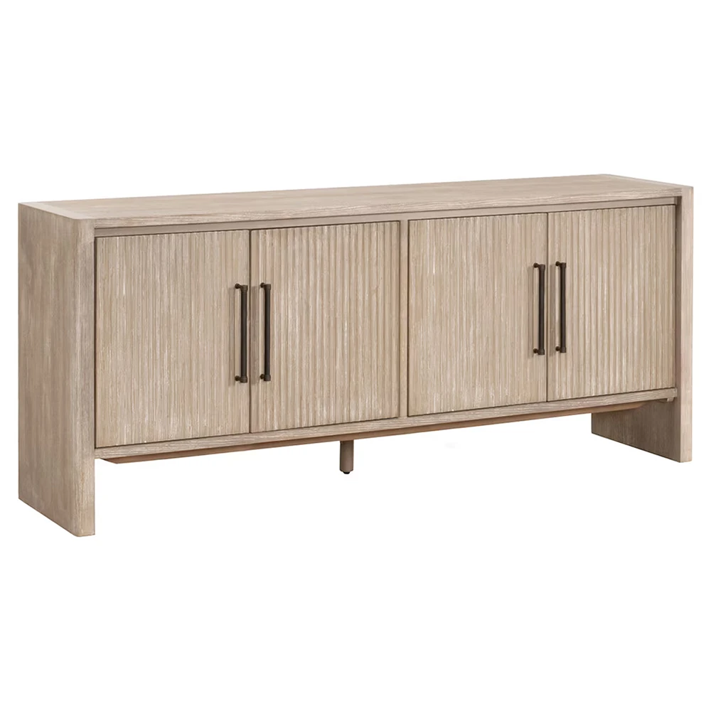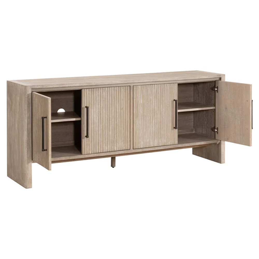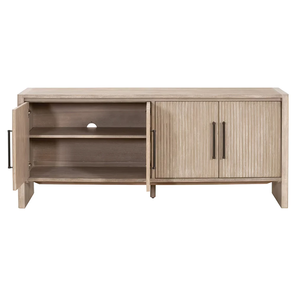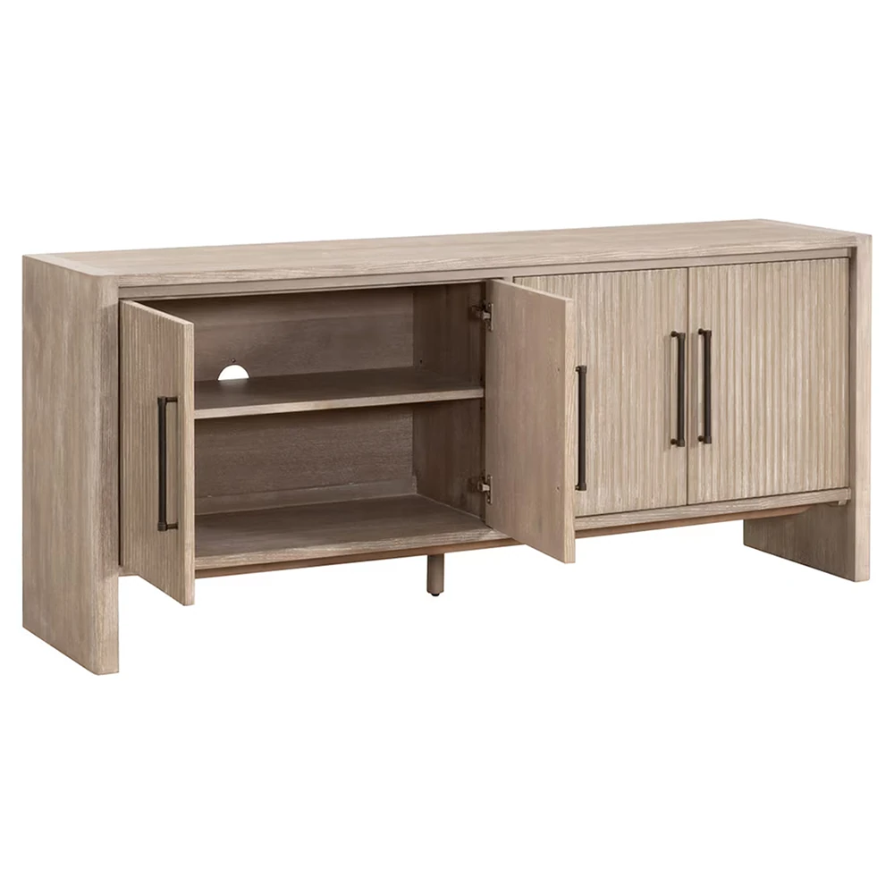 Cayson Coastal Beach Grey Acacia Wood Textured Media Cabinet - 74"