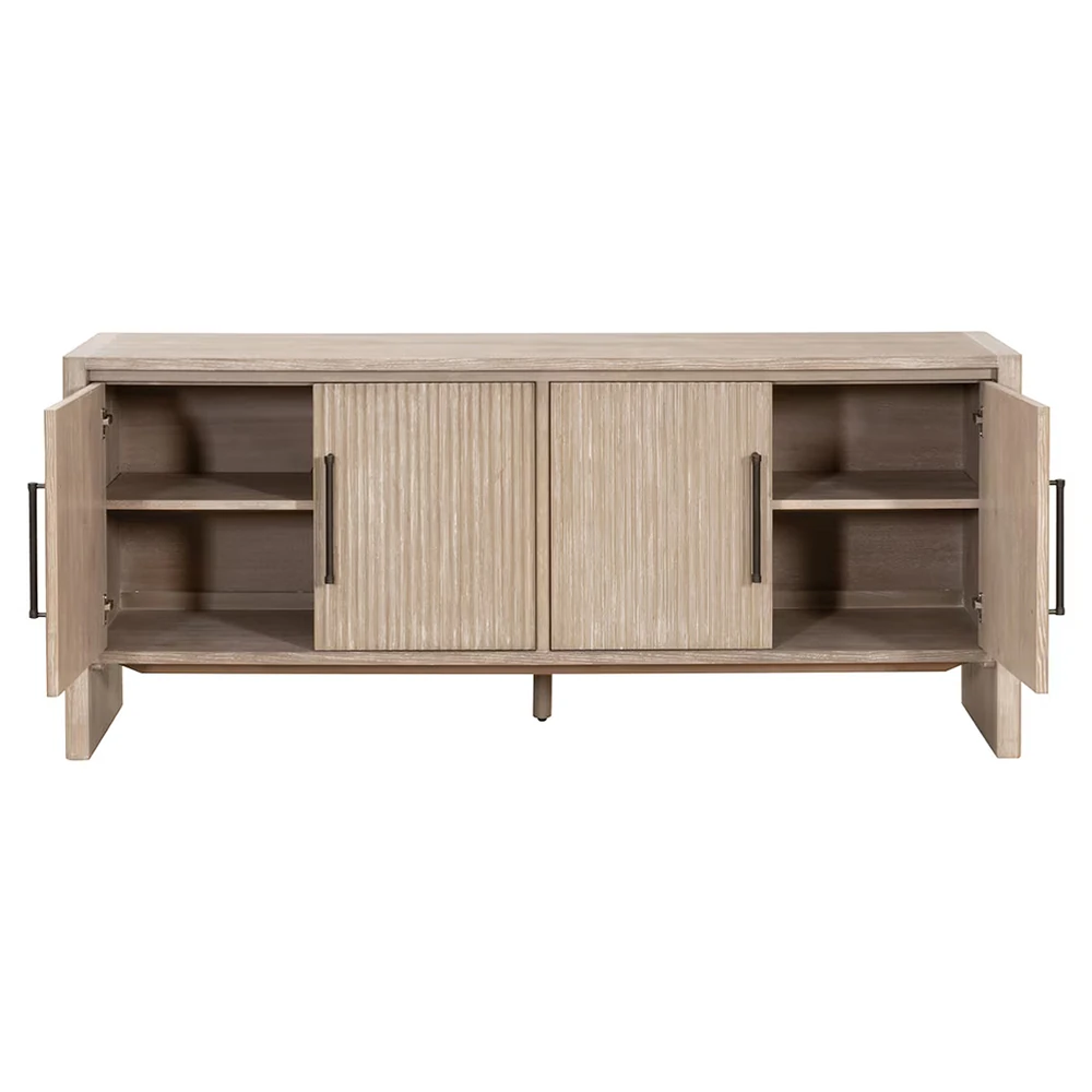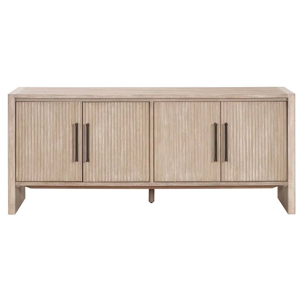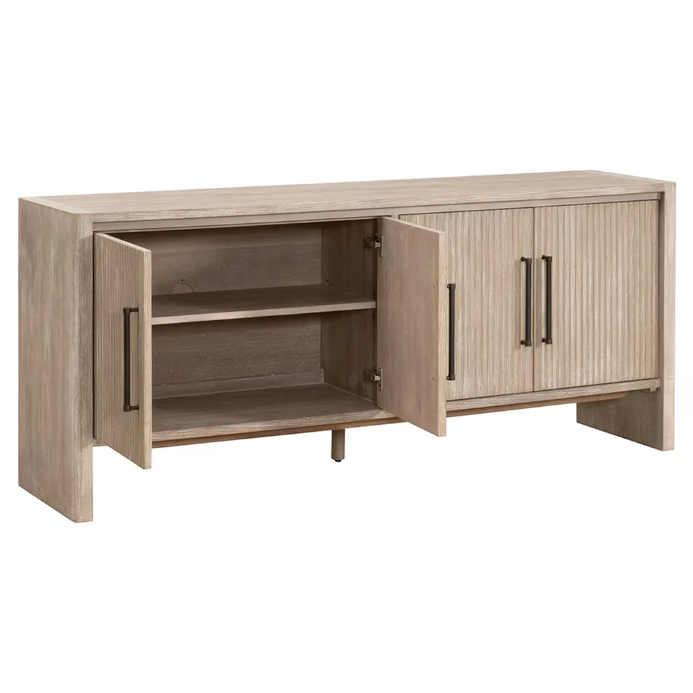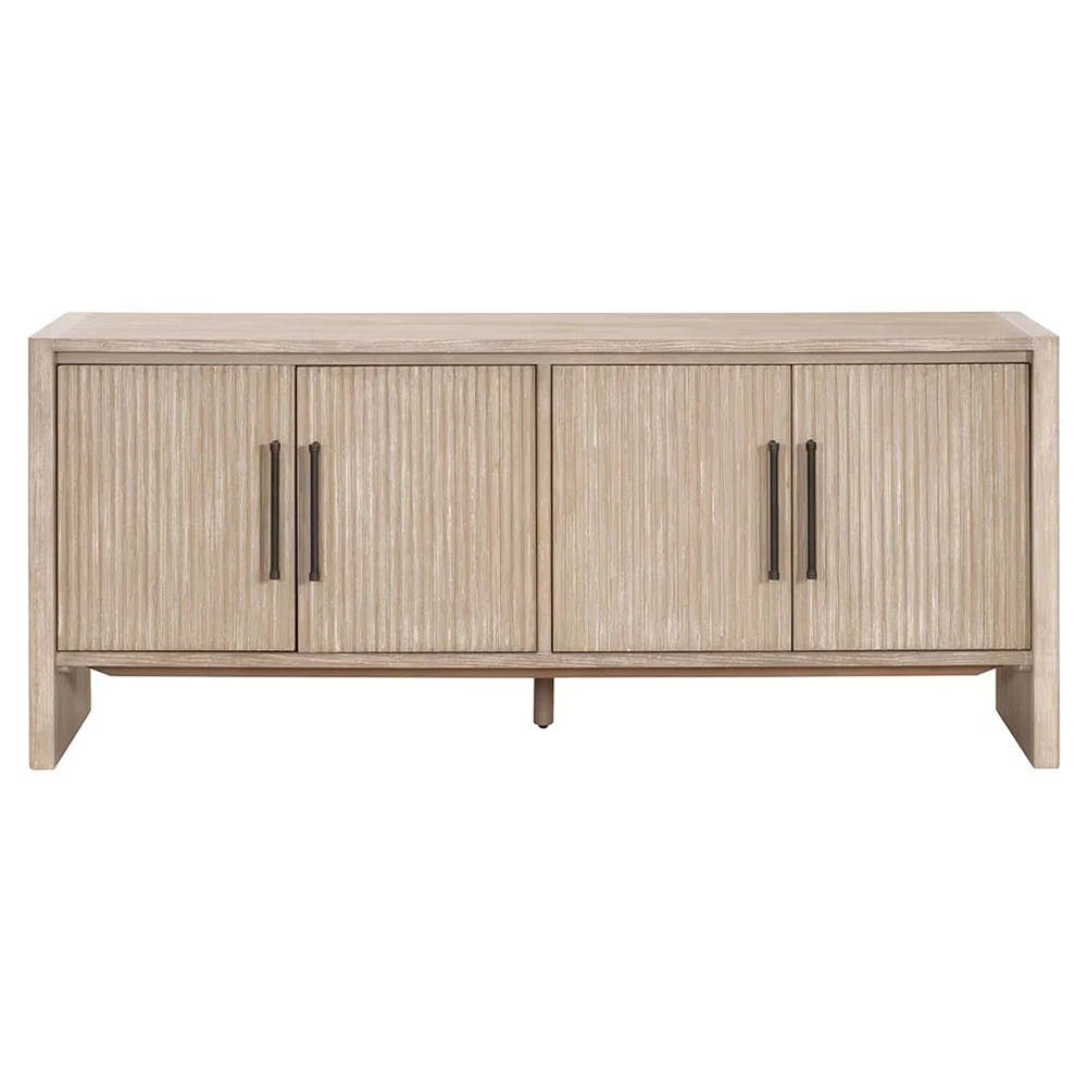 Cayson Coastal Beach Grey Acacia Wood Textured Media Cabinet - 74"