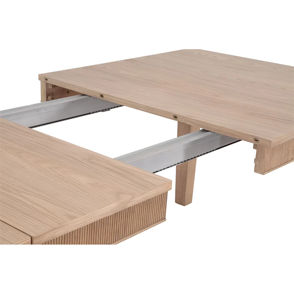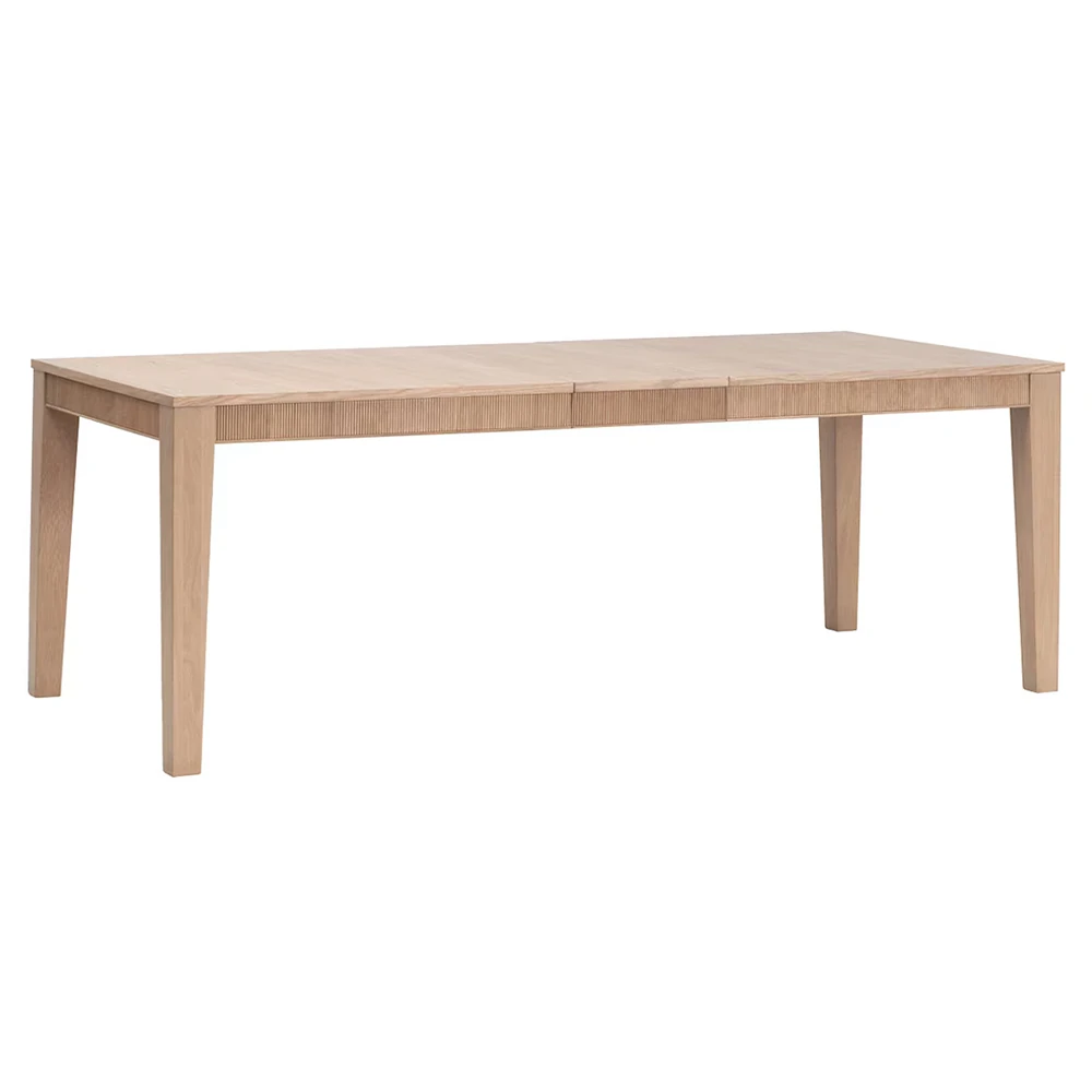 • Features 1 removable extension leaf; Fluted wood apron detail;