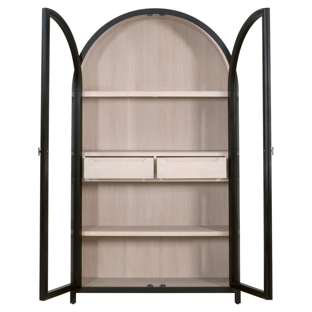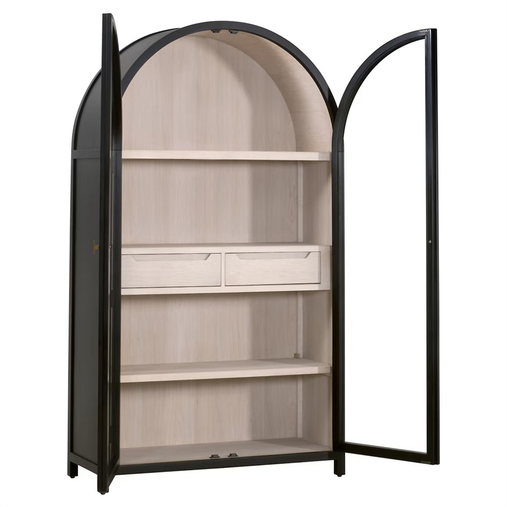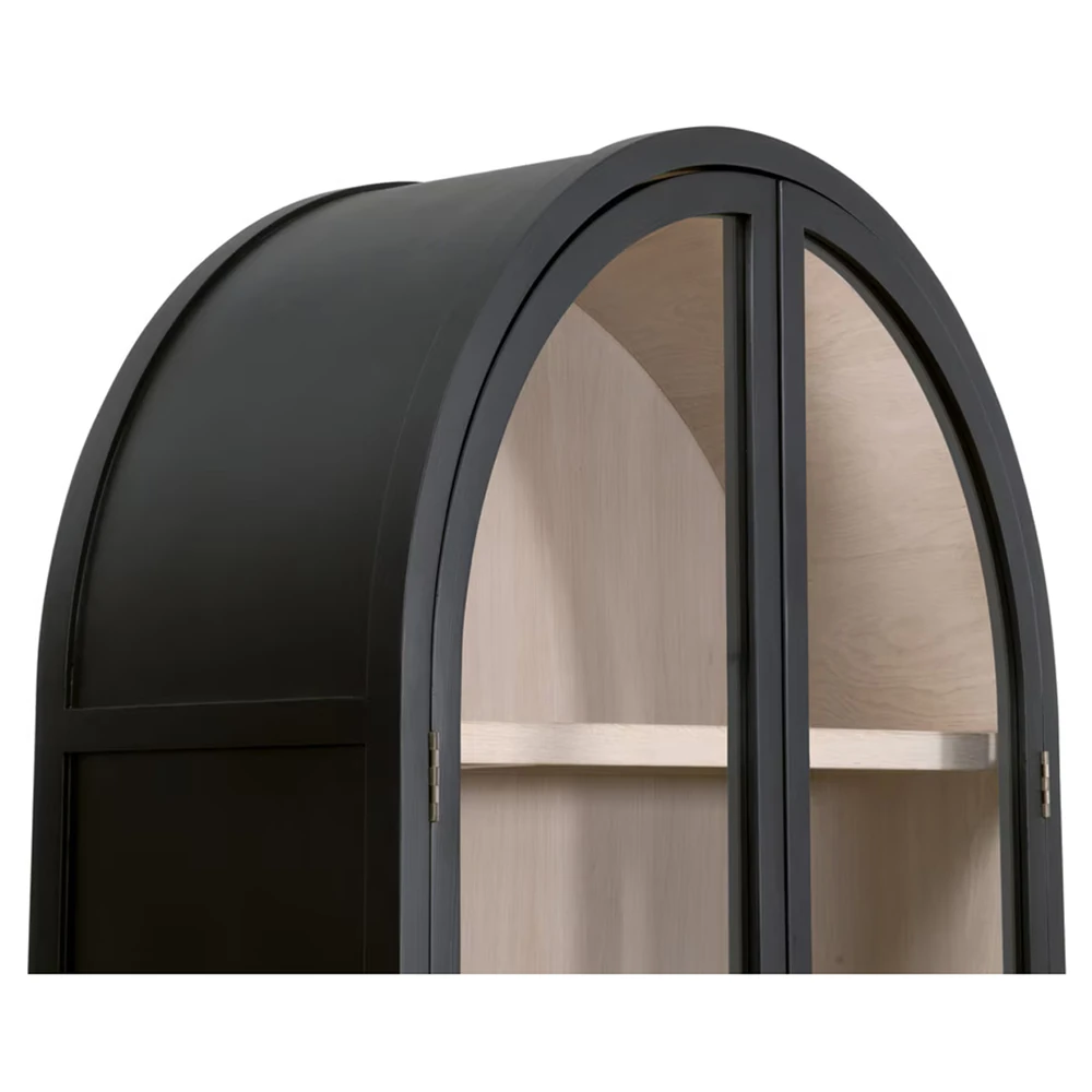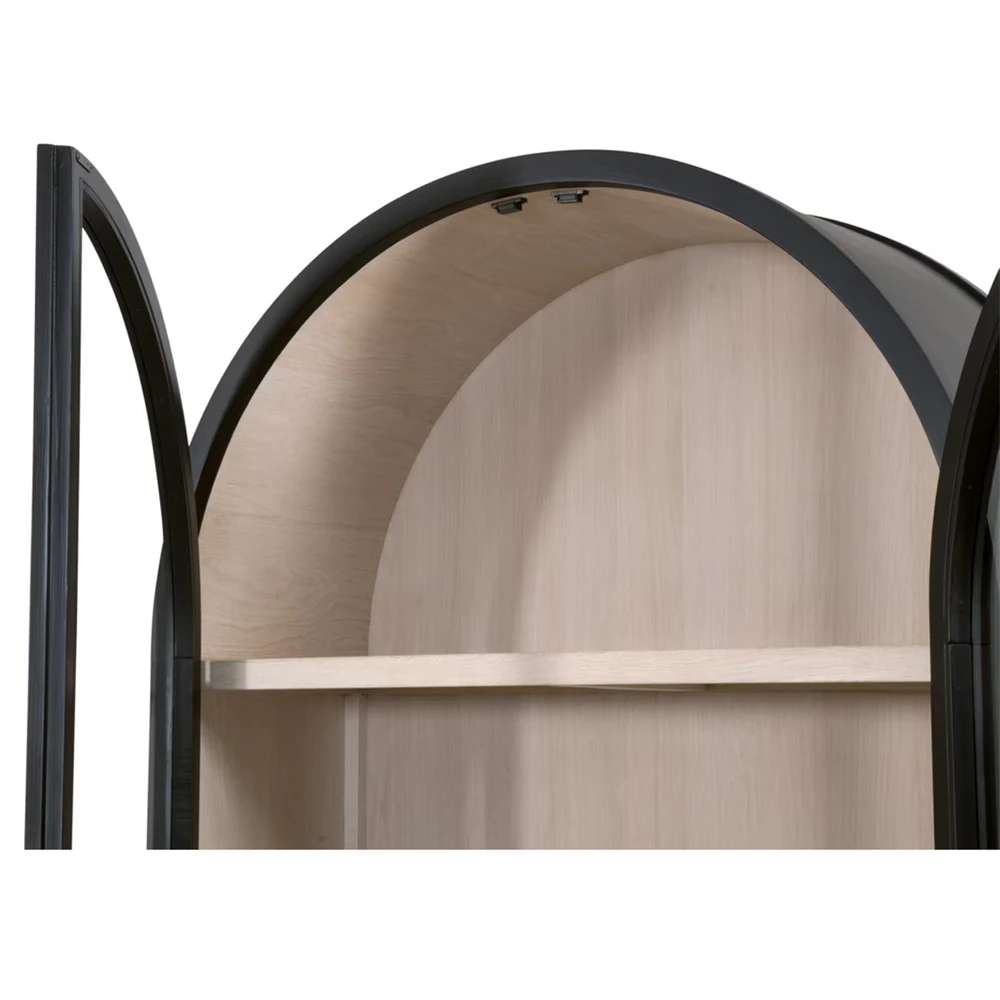 Ivan Mid Century Clear Glass Black Solid Oak Wood 2 Door Arched Display Case