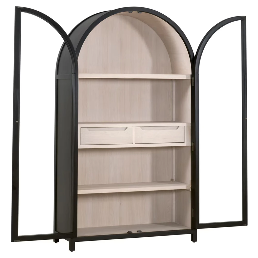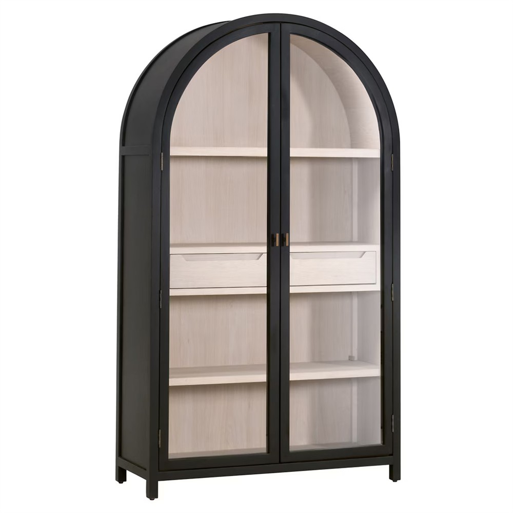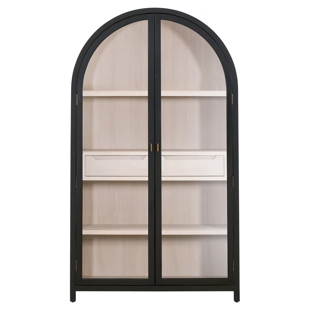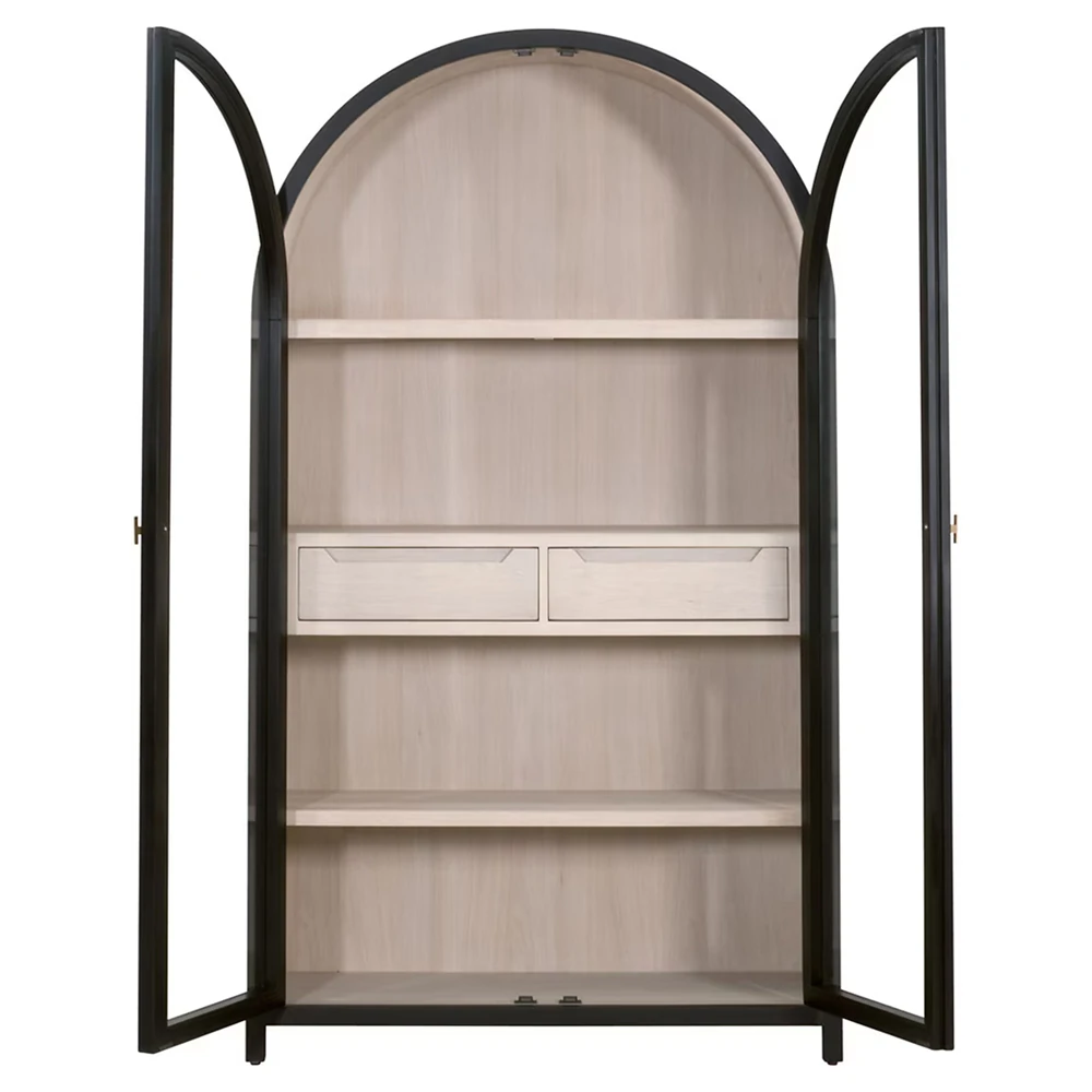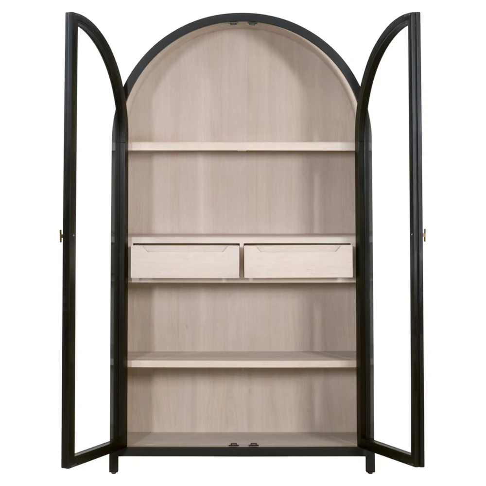 Ivan Mid Century Clear Glass Black Solid Oak Wood 2 Door Arched Display Case