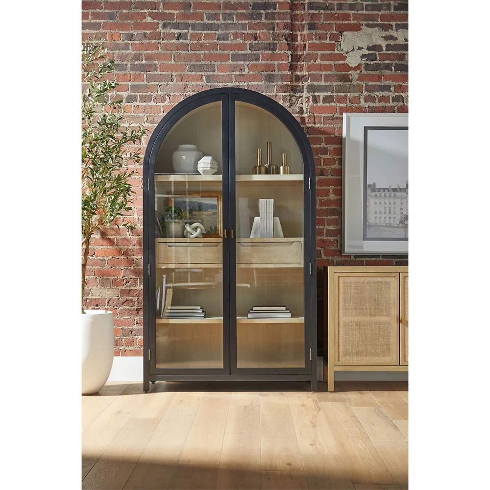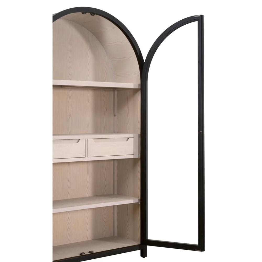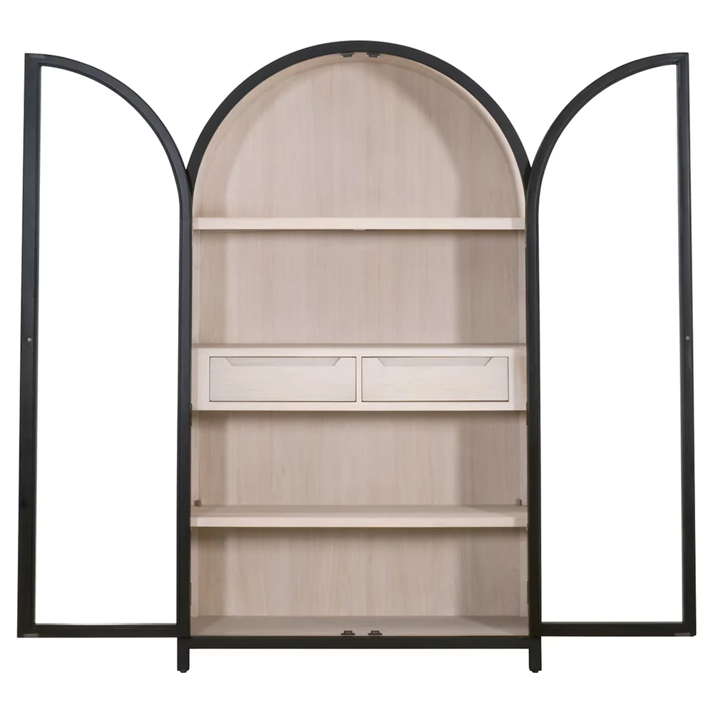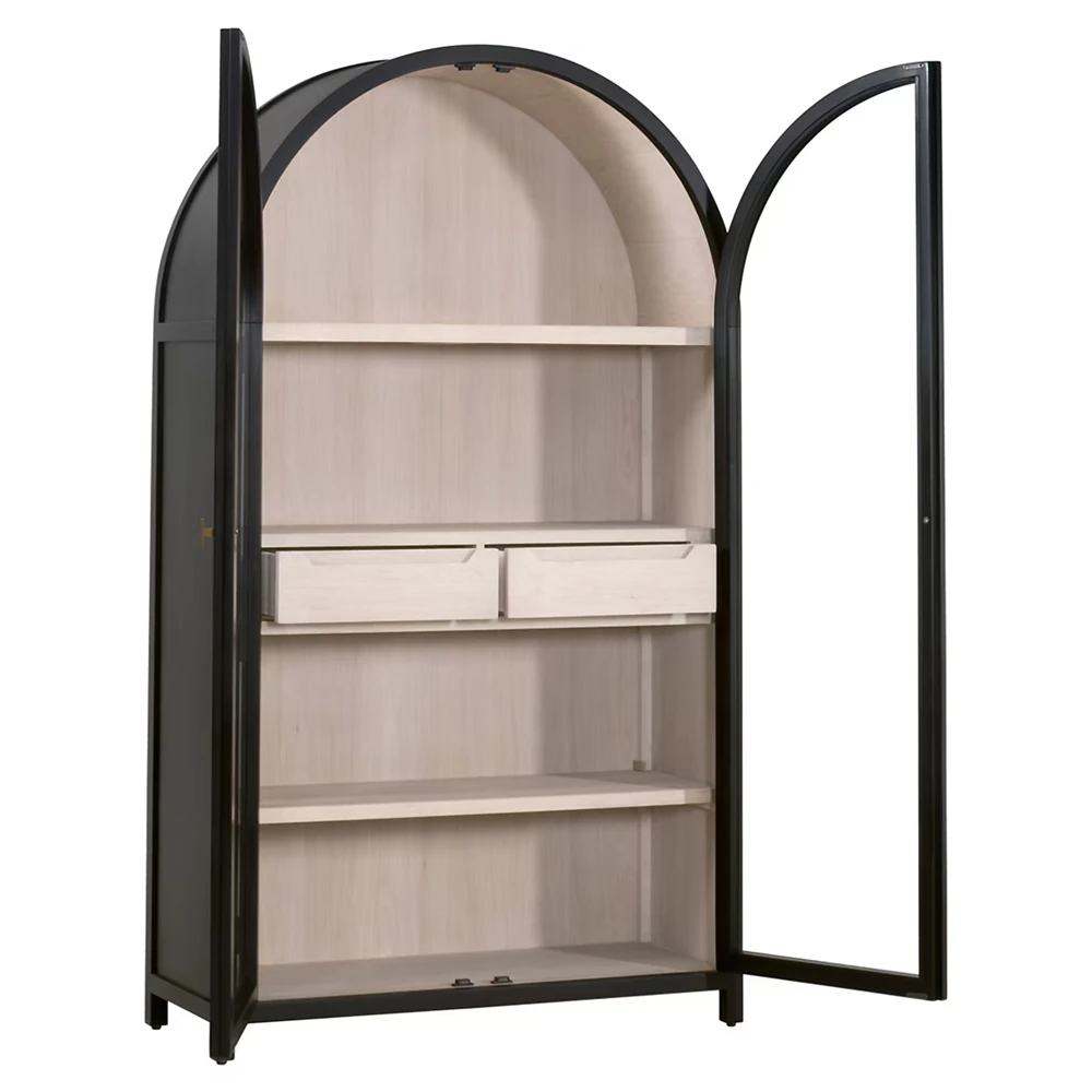 Ivan Mid Century Clear Glass Black Solid Oak Wood 2 Door Arched Display Case