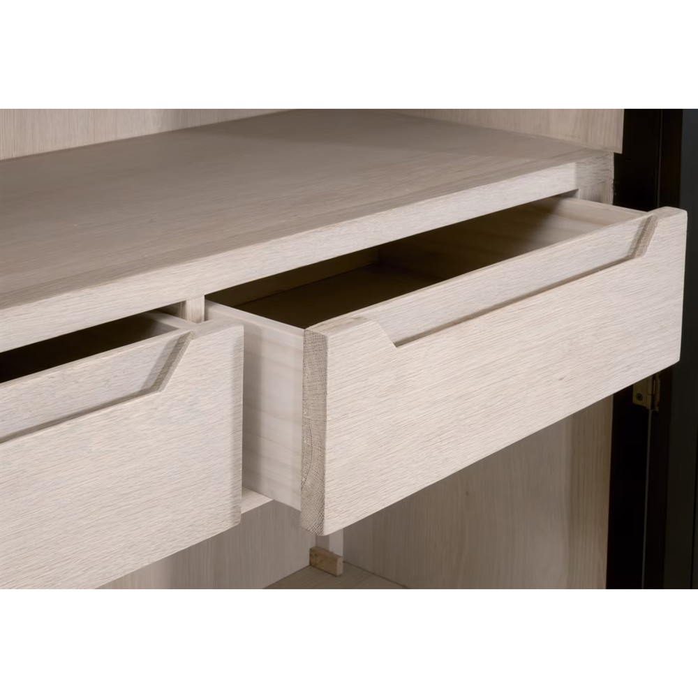 • Logen Coastal Beach Smoke Gray Oak Storage Bookcase|Kathy Kuo Home