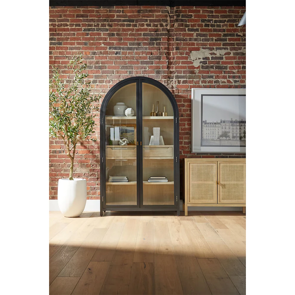 Charles Modern Classic Natural Brown Wood Arched Display Cabinet