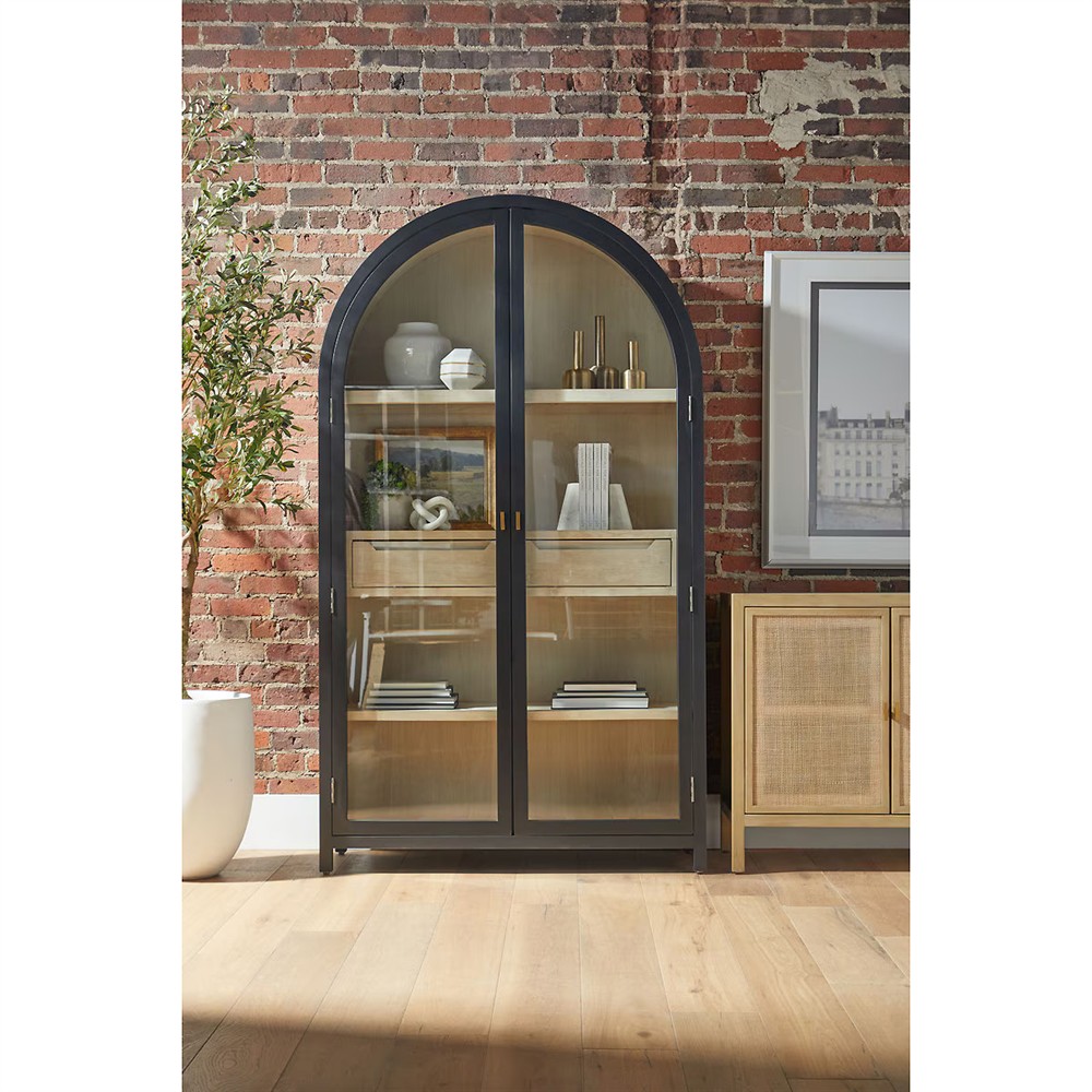 Stancil Industrial Matte Black Iron Frame Clear Glass Door Wide Arch Display Case