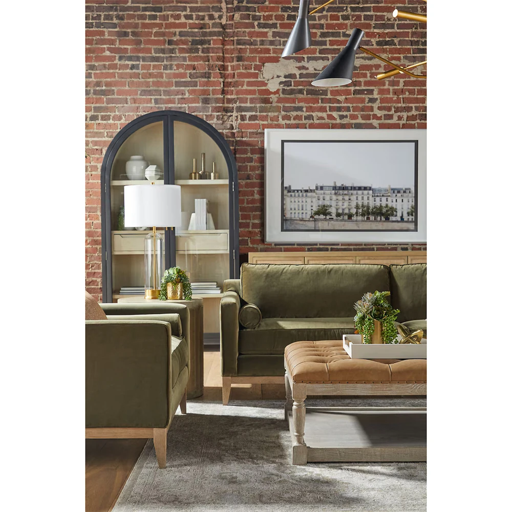 • Ivan Mid Century Clear Glass Black Solid Oak Wood 2 Door Arched Display Case|Kathy Kuo Home