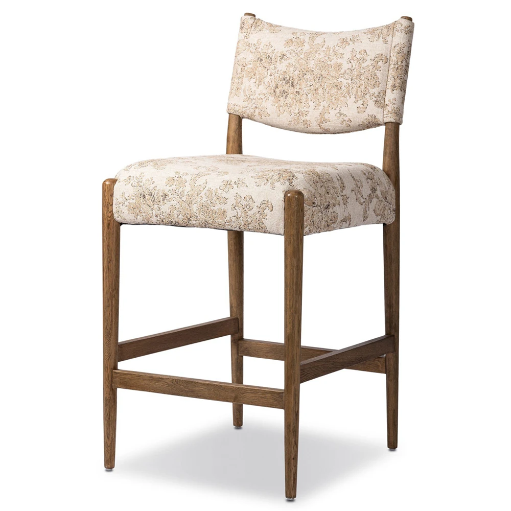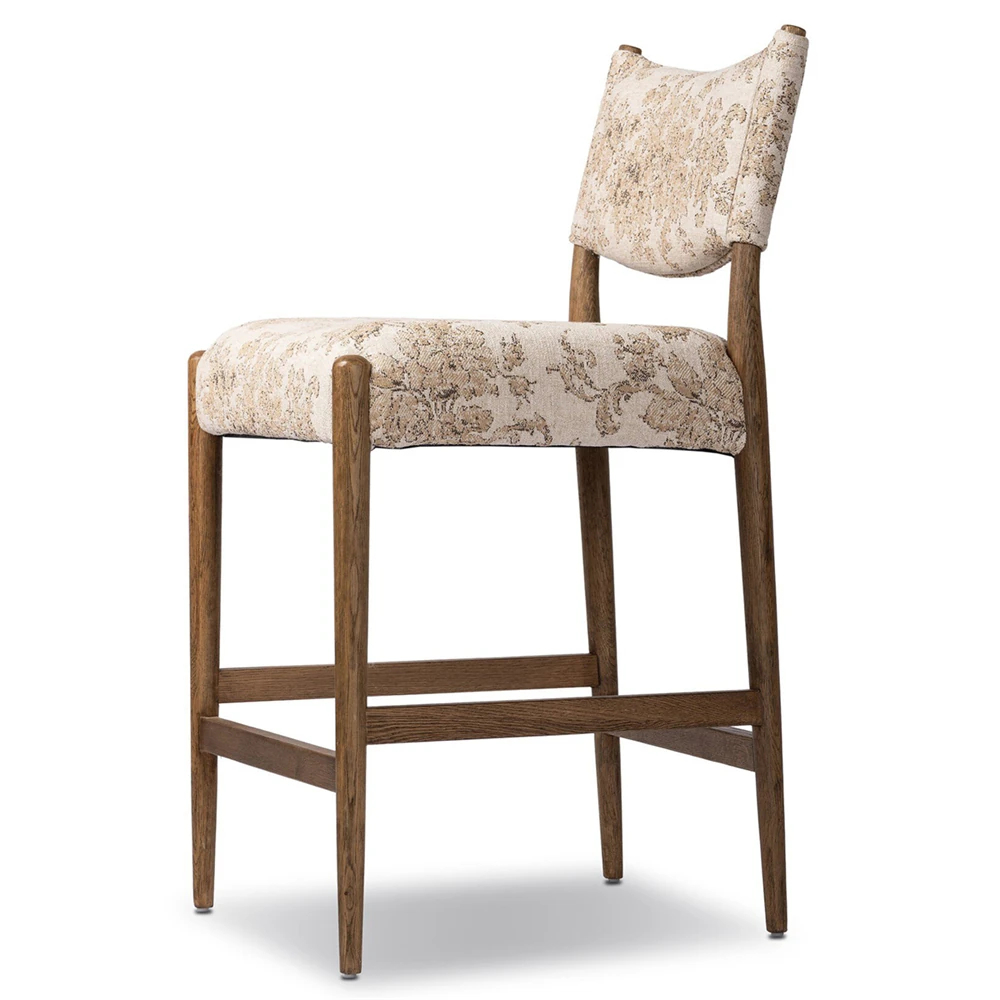 Odelia Modern Classic Beige Printed Oak Wood Counter Stool