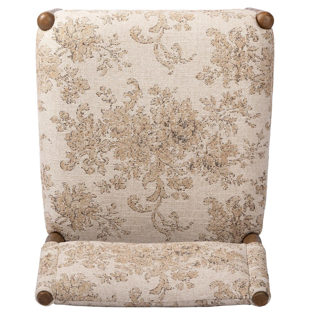 • Upholstered in beige printed fabric. Fabric content: 53% polyester, 33% rayon, 14% linen. Rub rate: 15,000