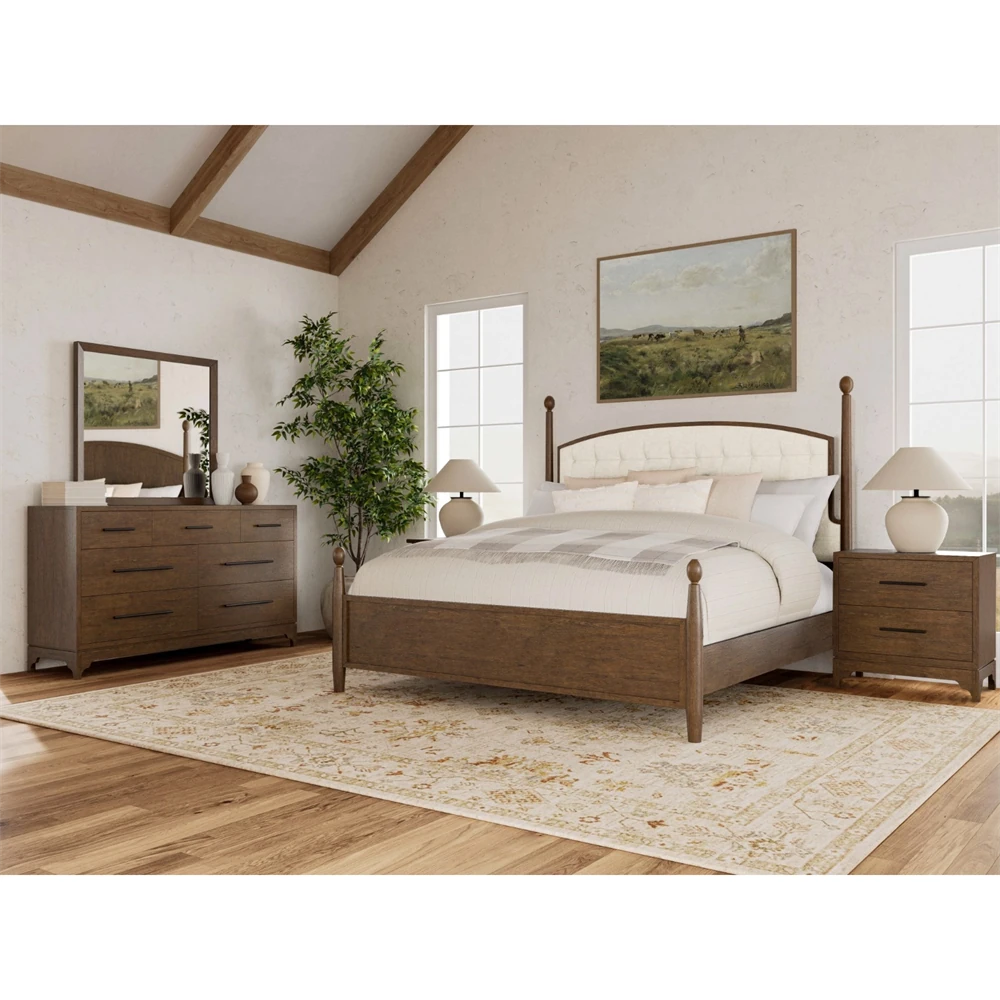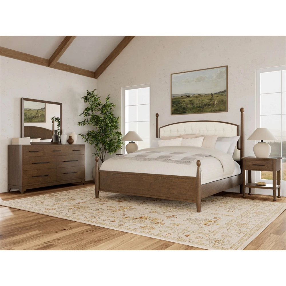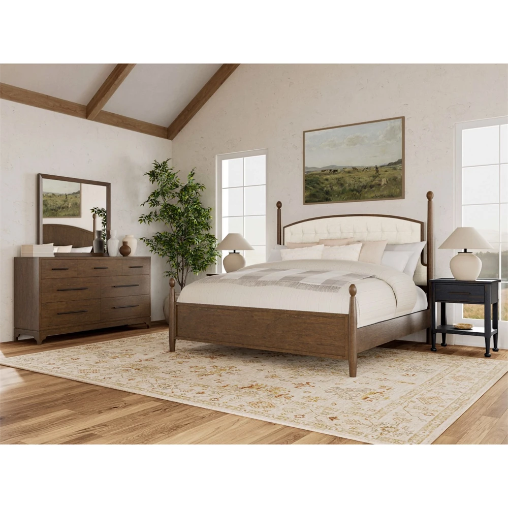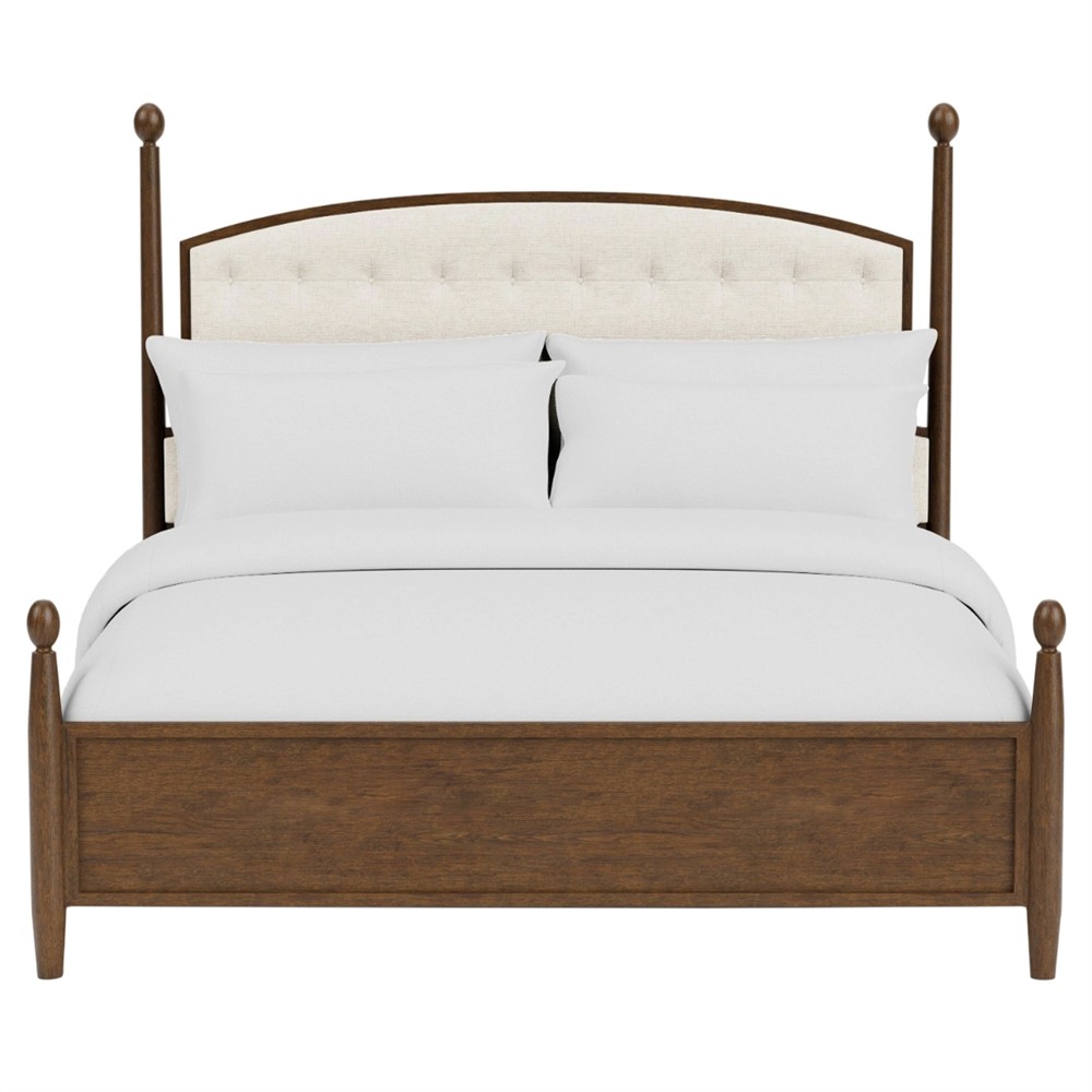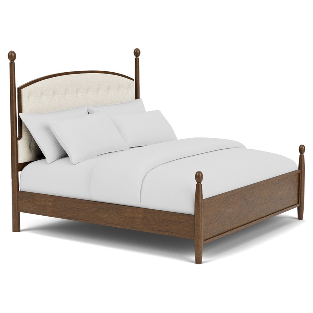 Hearth Updated Traditional Cream Performance Brown Wood Tufted Bed - Queen