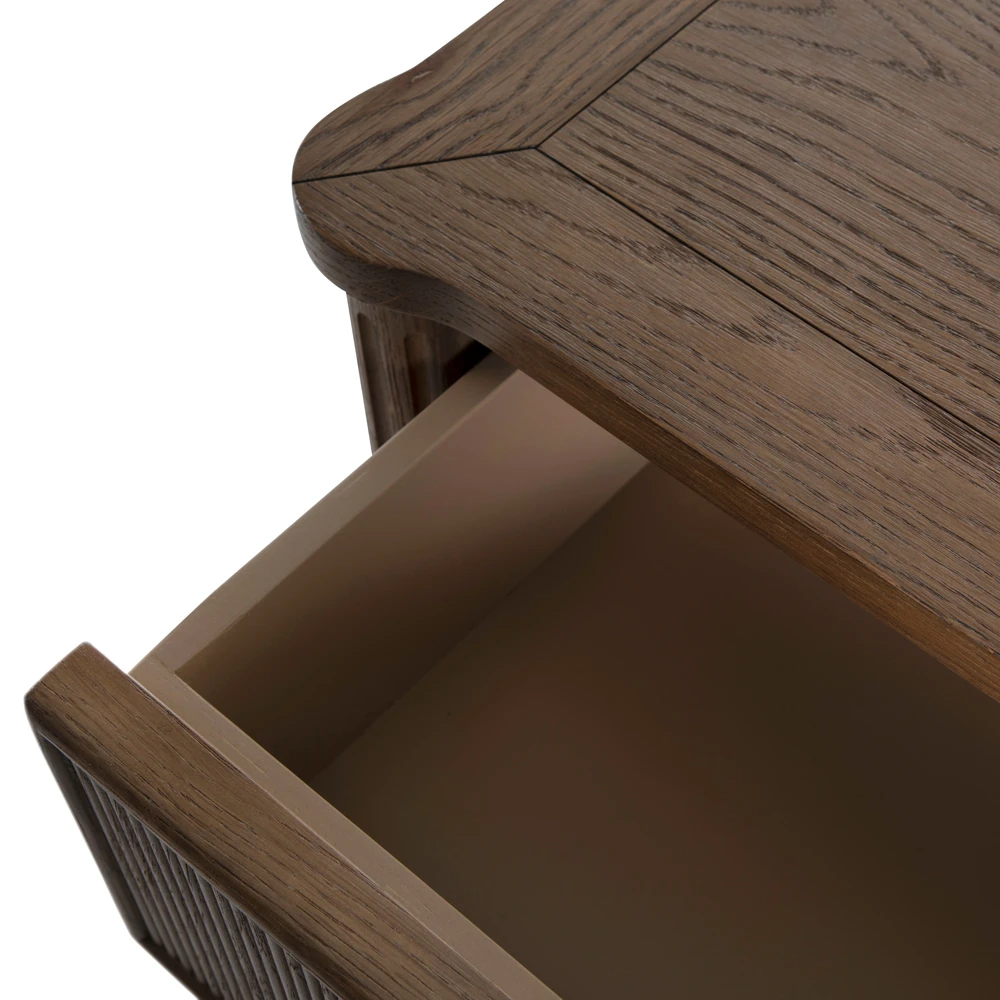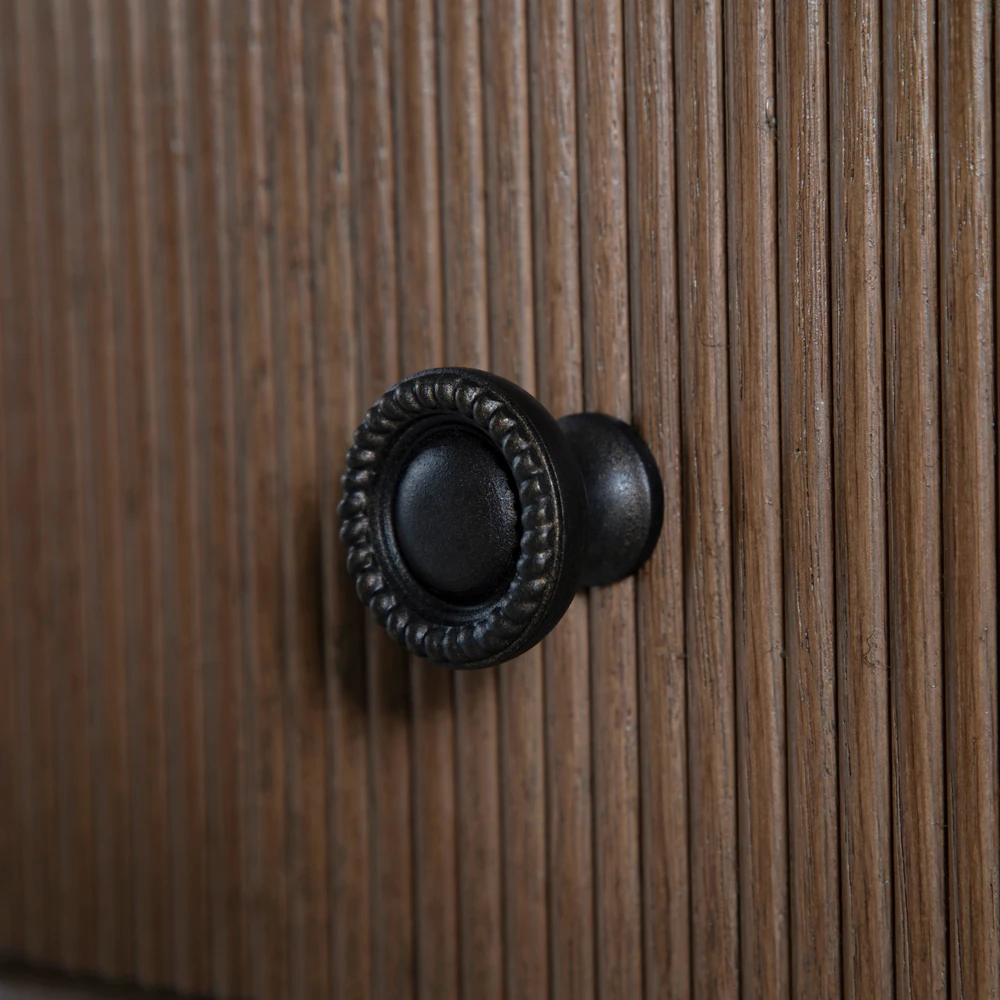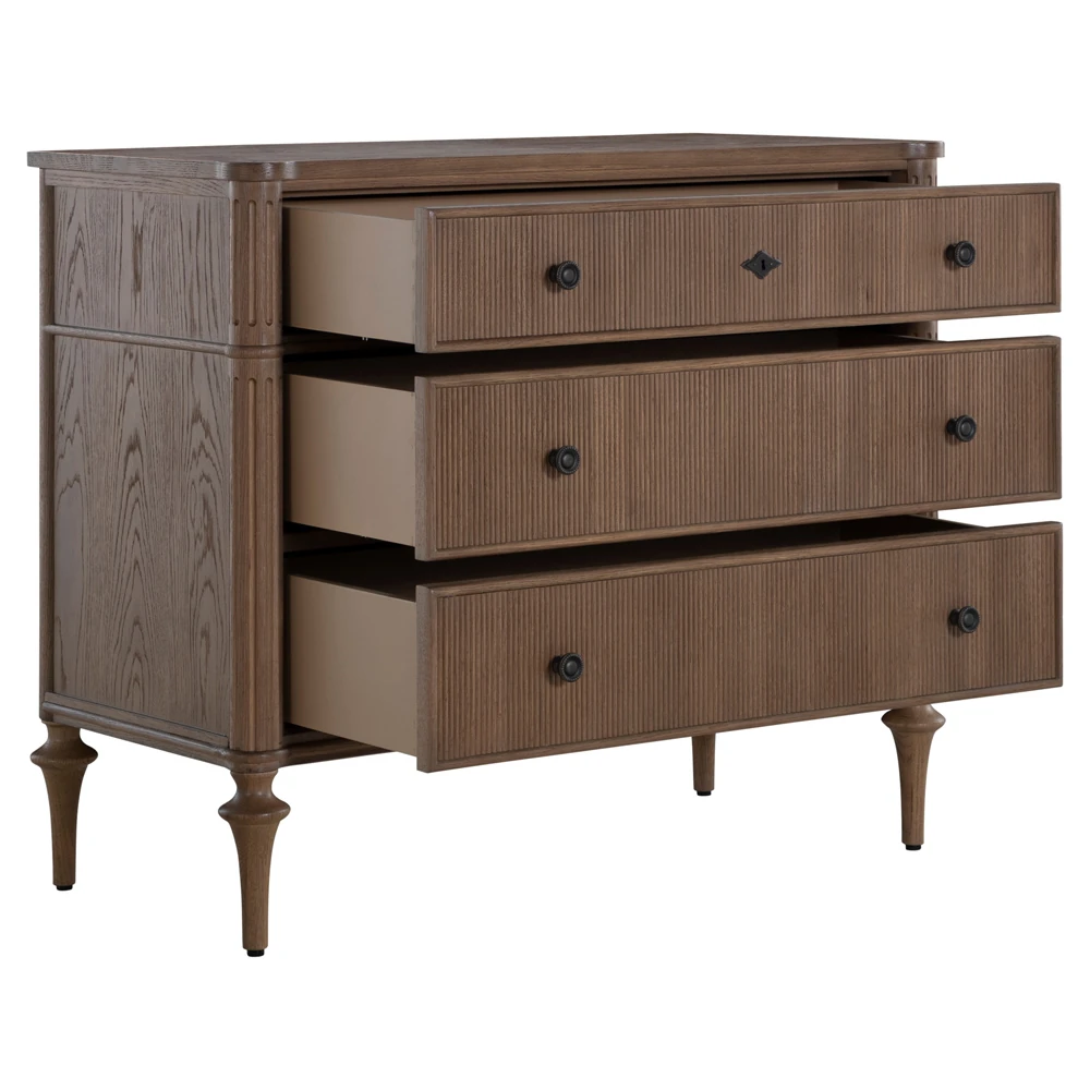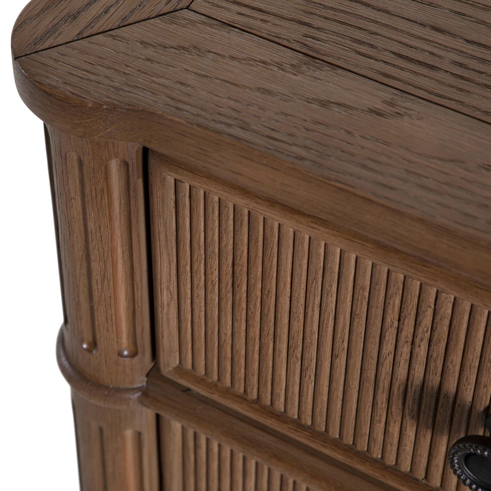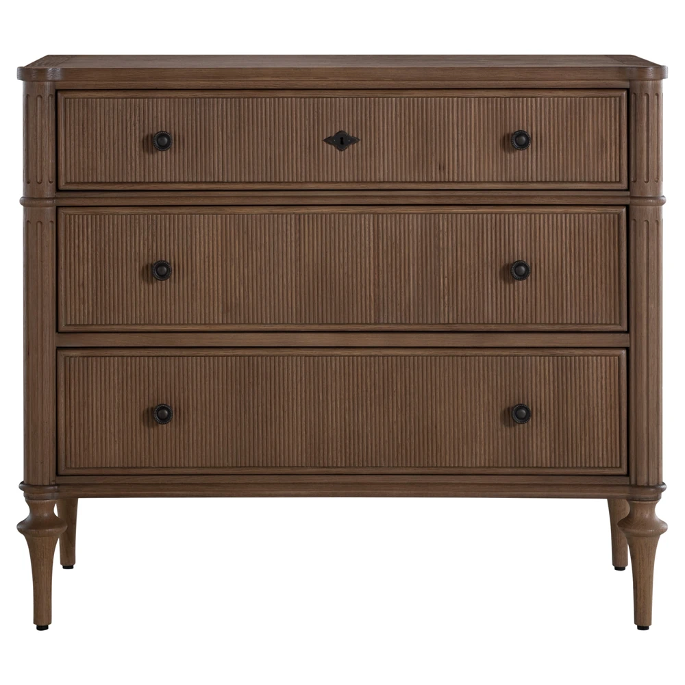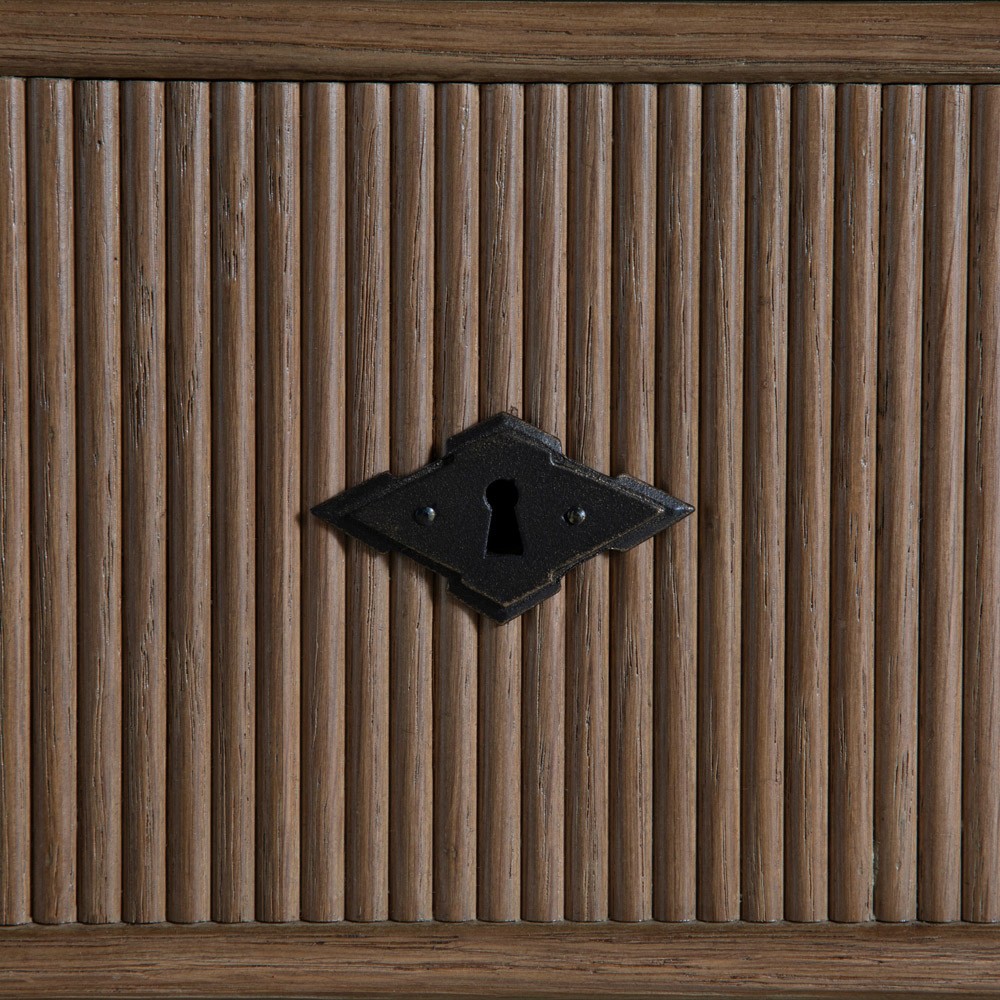 • Features pencil ribbed drawer fronts, a unique antique bronze keyhole cover and hardware