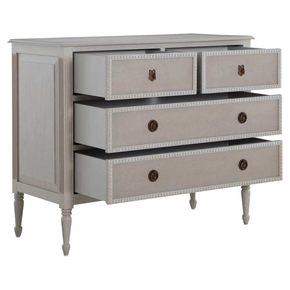 • Leona French Parchment White Mahogany Linen Front Tapered Legs 9 Drawer Dresser|Kathy Kuo Home